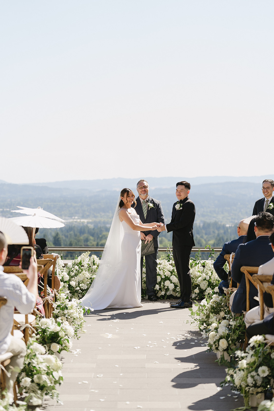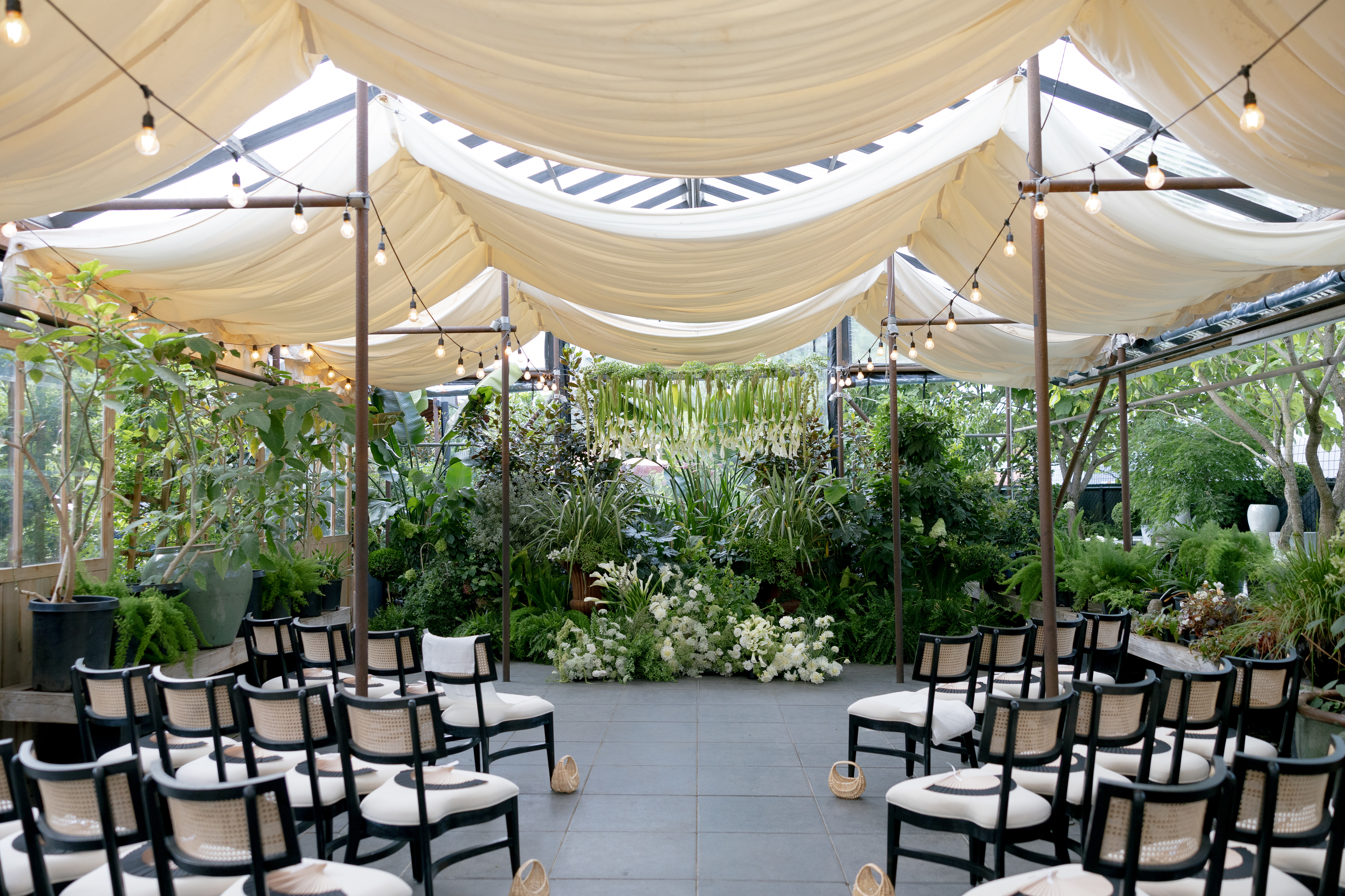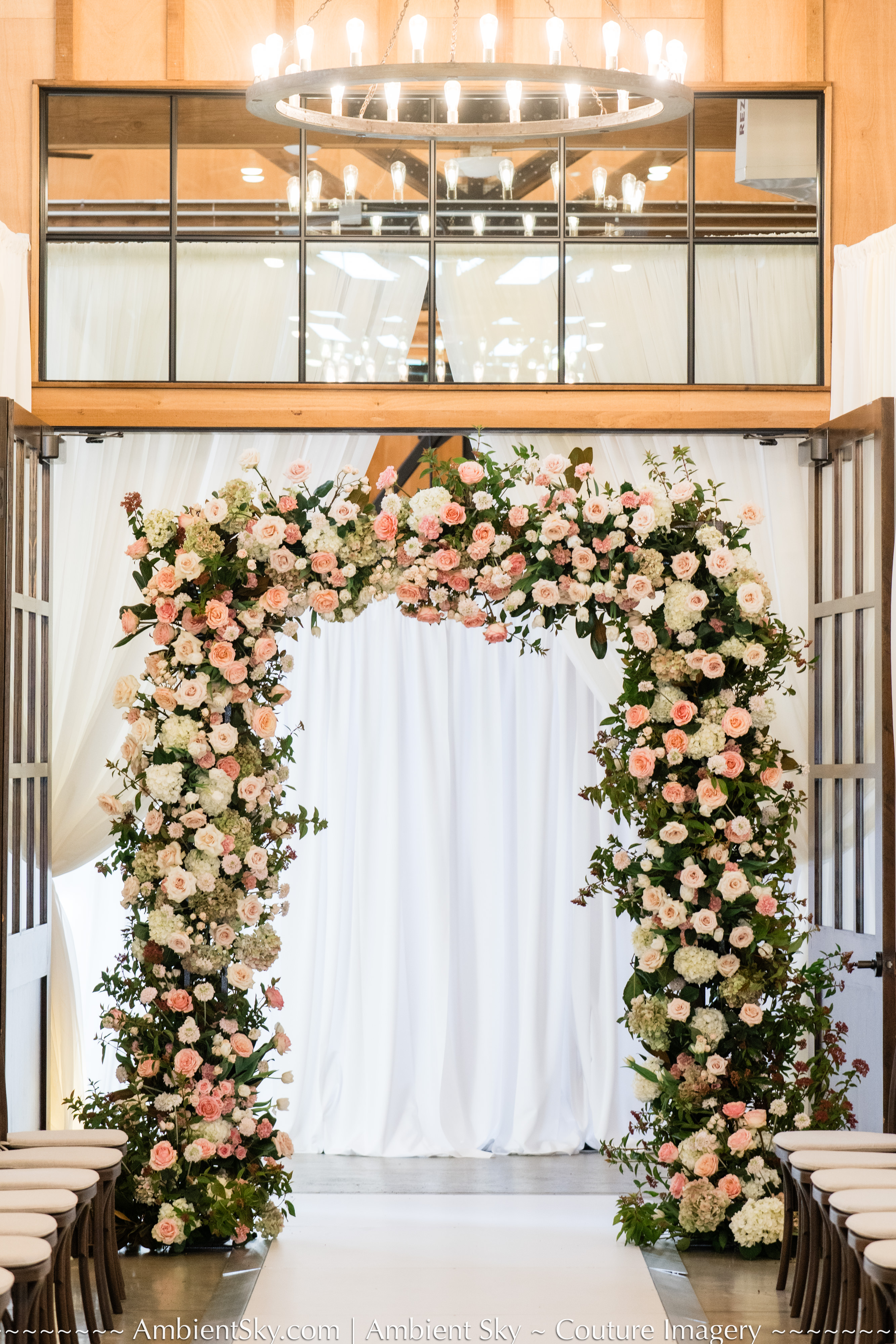 Suspended installations such as flower clouds or hanging greenery are another great way to draw attention to your ceremony site.