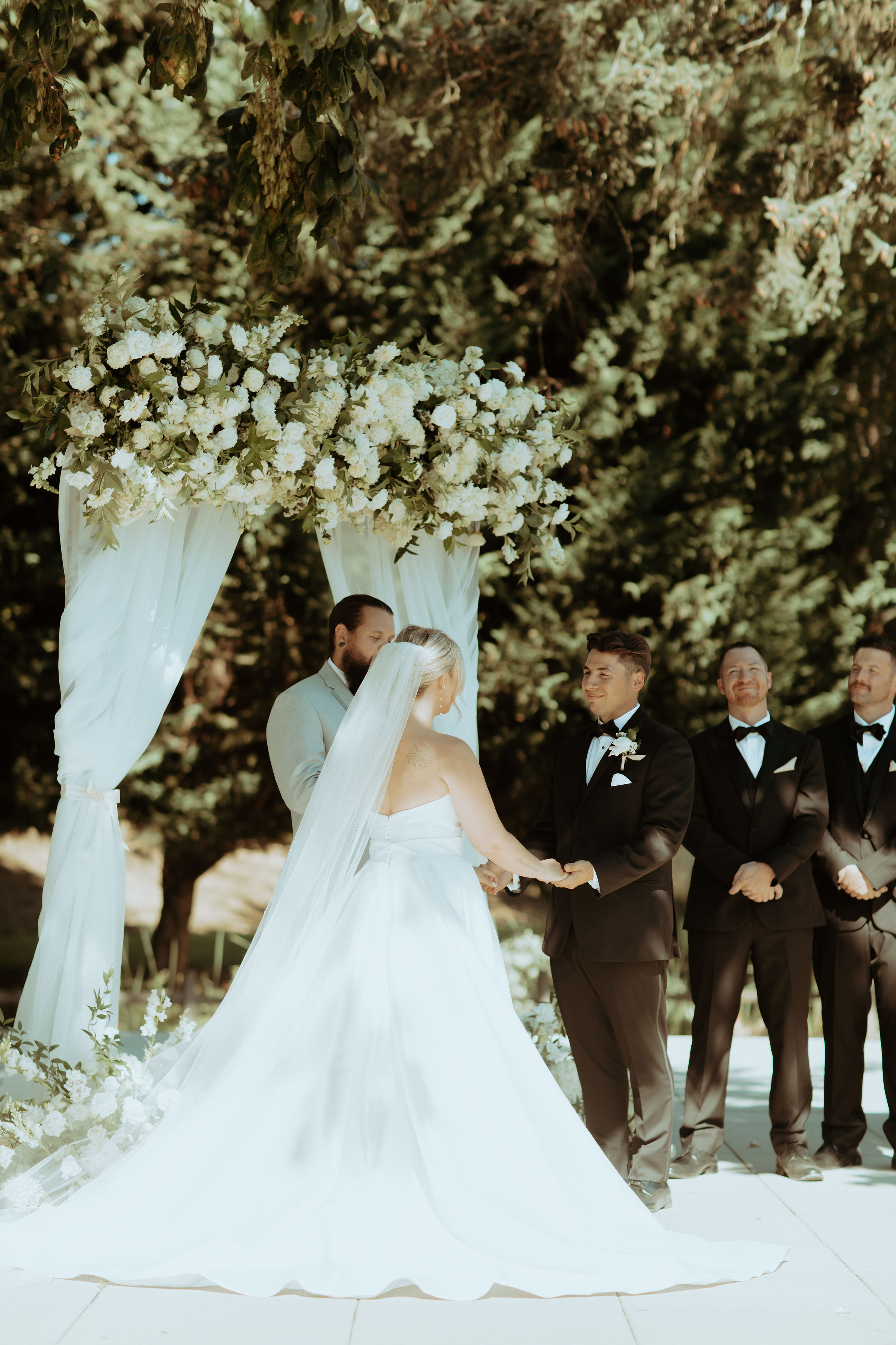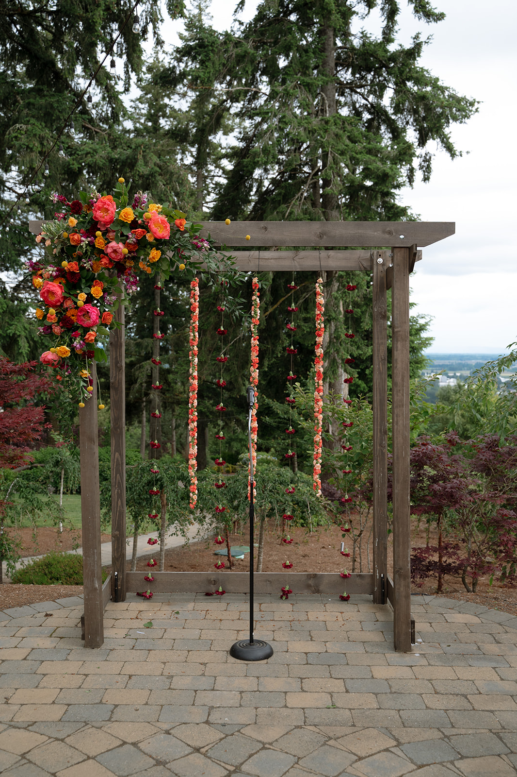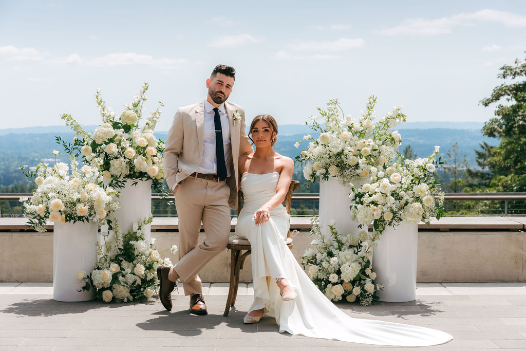 Our deconstructed arbor creates an asymmetrical pillar effect that beautifully frames you and your betrothed.