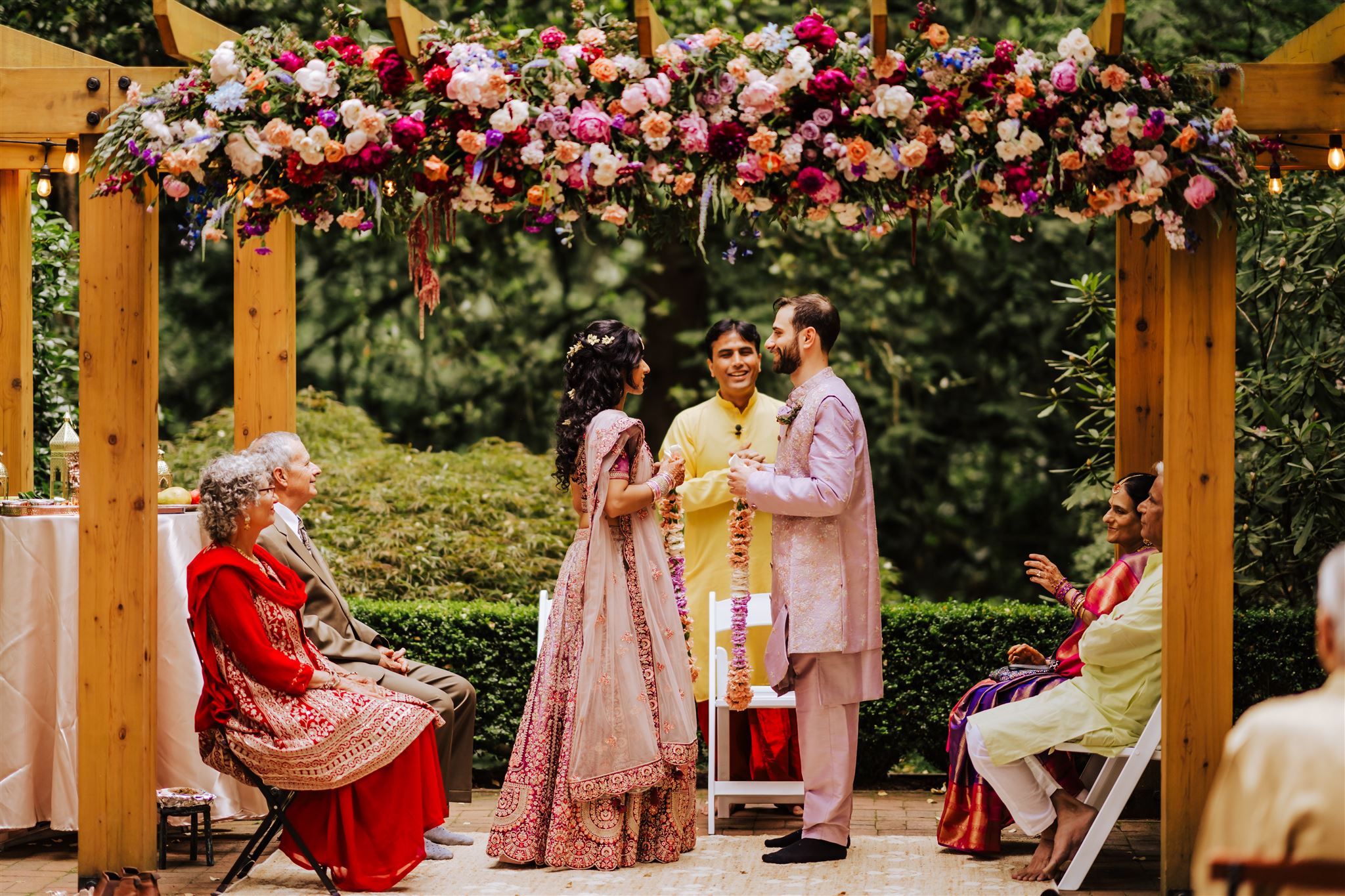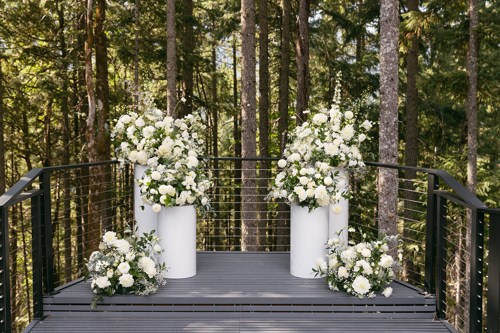 We don’t usually recommend moving florals that are affixed to your arbor or gazebo. If you’re hoping to repurpose ceremony flowers to your reception area then we recommend opting for freestanding arrangements or adding aisle arrangements that can be easily moved.