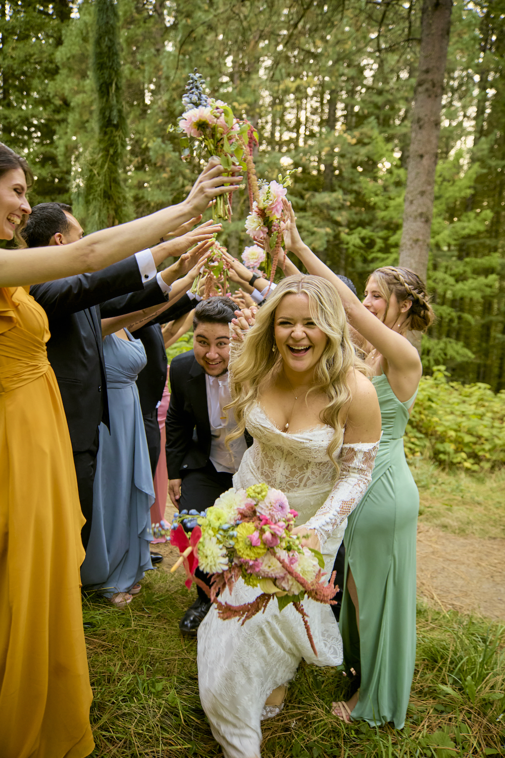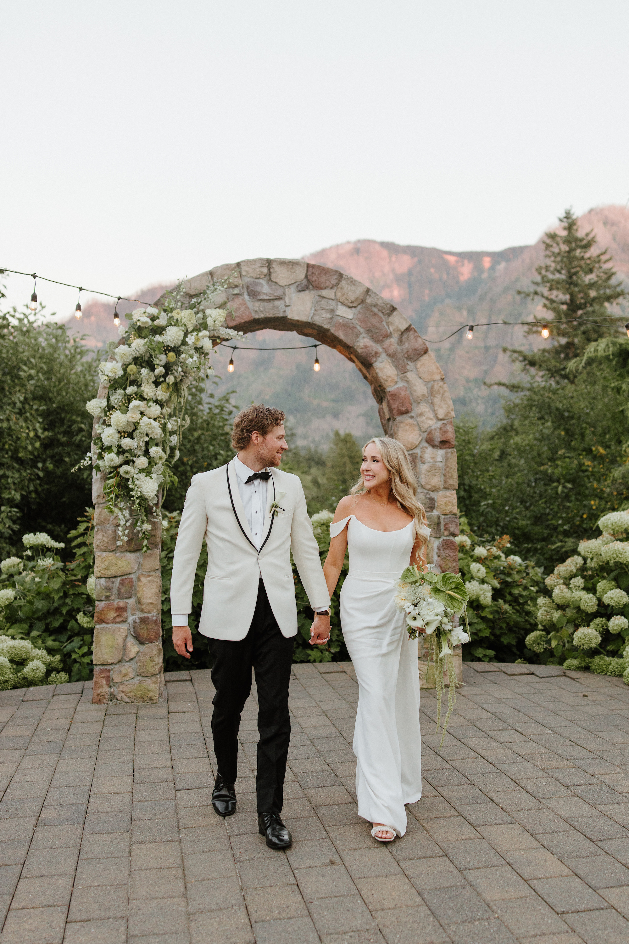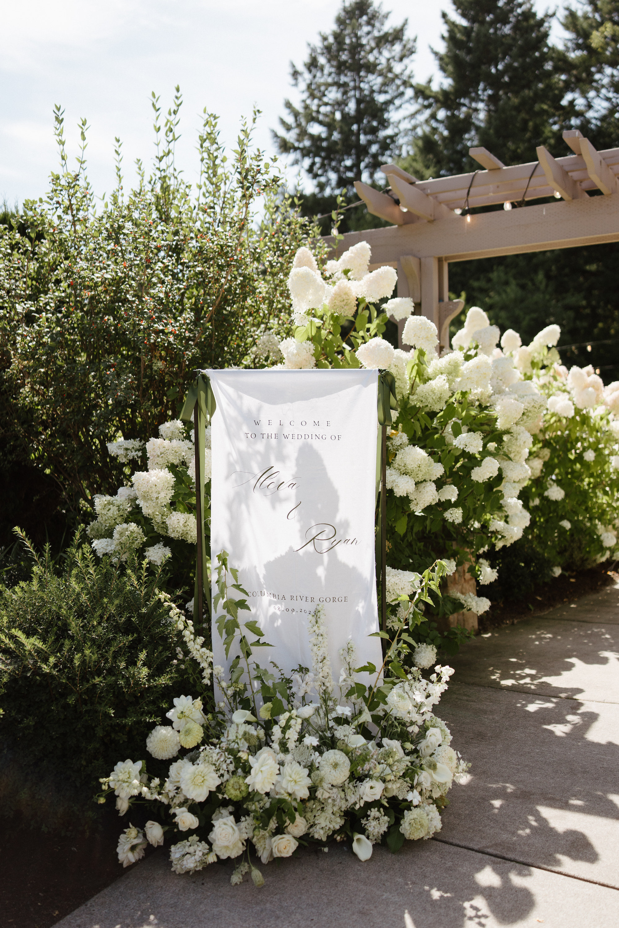 Here's a new take on a traditional classic - green & white but make it modern. For Alexa & Ryan's wedding at Cape Horn, they wanted drippy, botanical, and lush designs featuring lime green and white. We used green hydrangea, amaranth, and anthurium to bring in the chartreuse and then balanced designs with white hydrangea, zinnia, calla lillies, dahlias, and agrostemma.