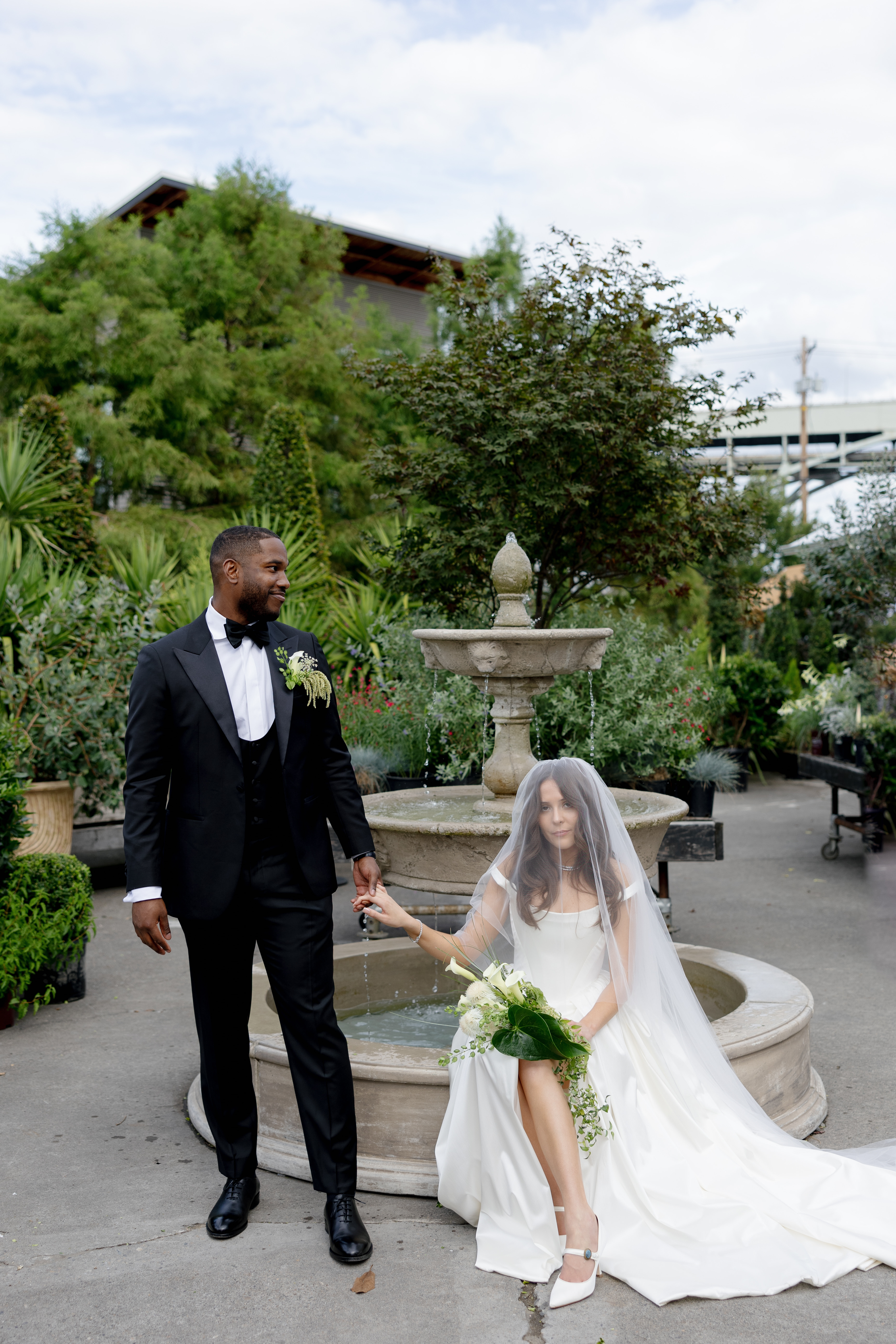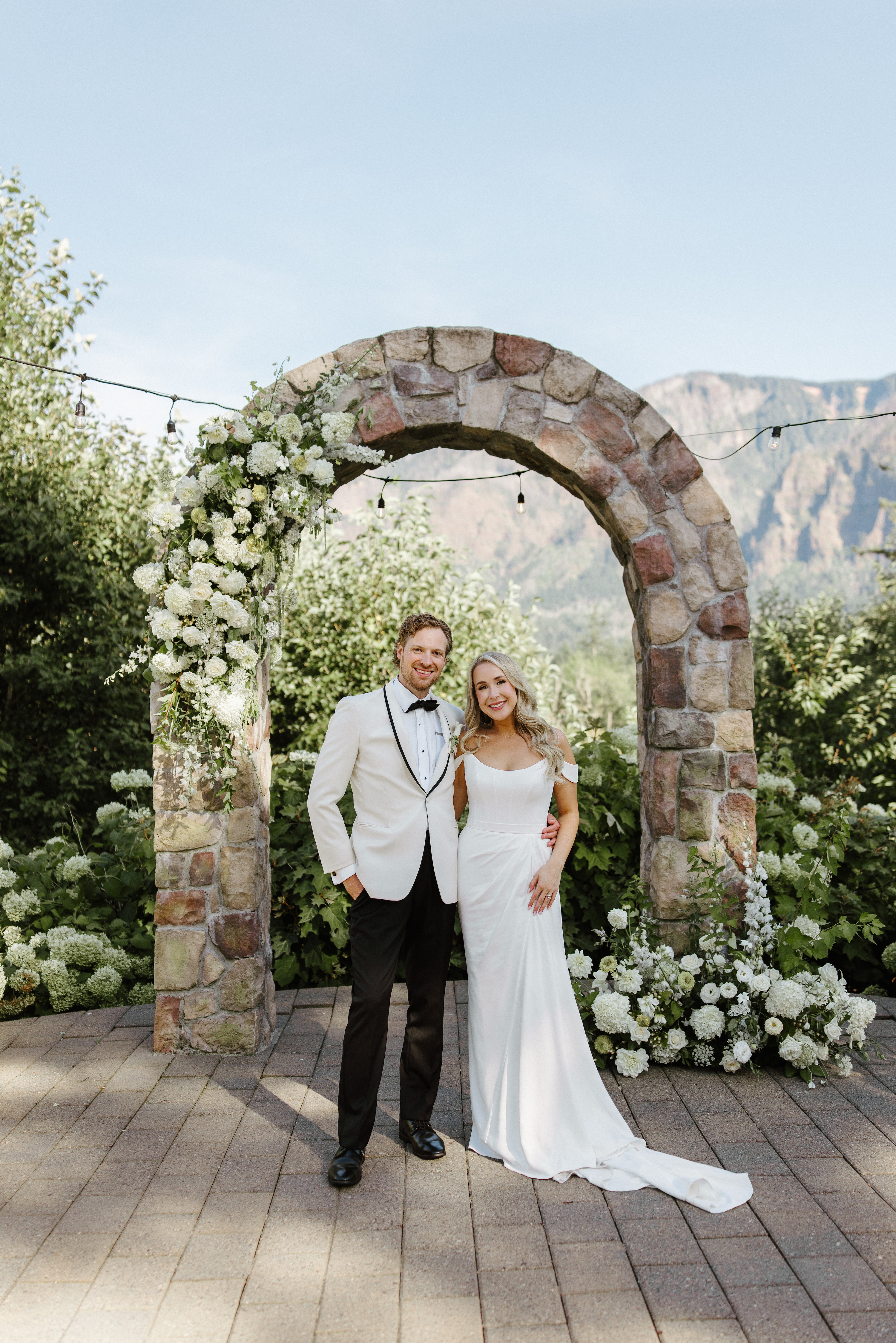 We balanced modern and garden party for A & S' wedding at The Evergreen. The big white blooms alongside elements such as draping greenery & tall delphinium helped create an airy, organic tone while still feeling classic.