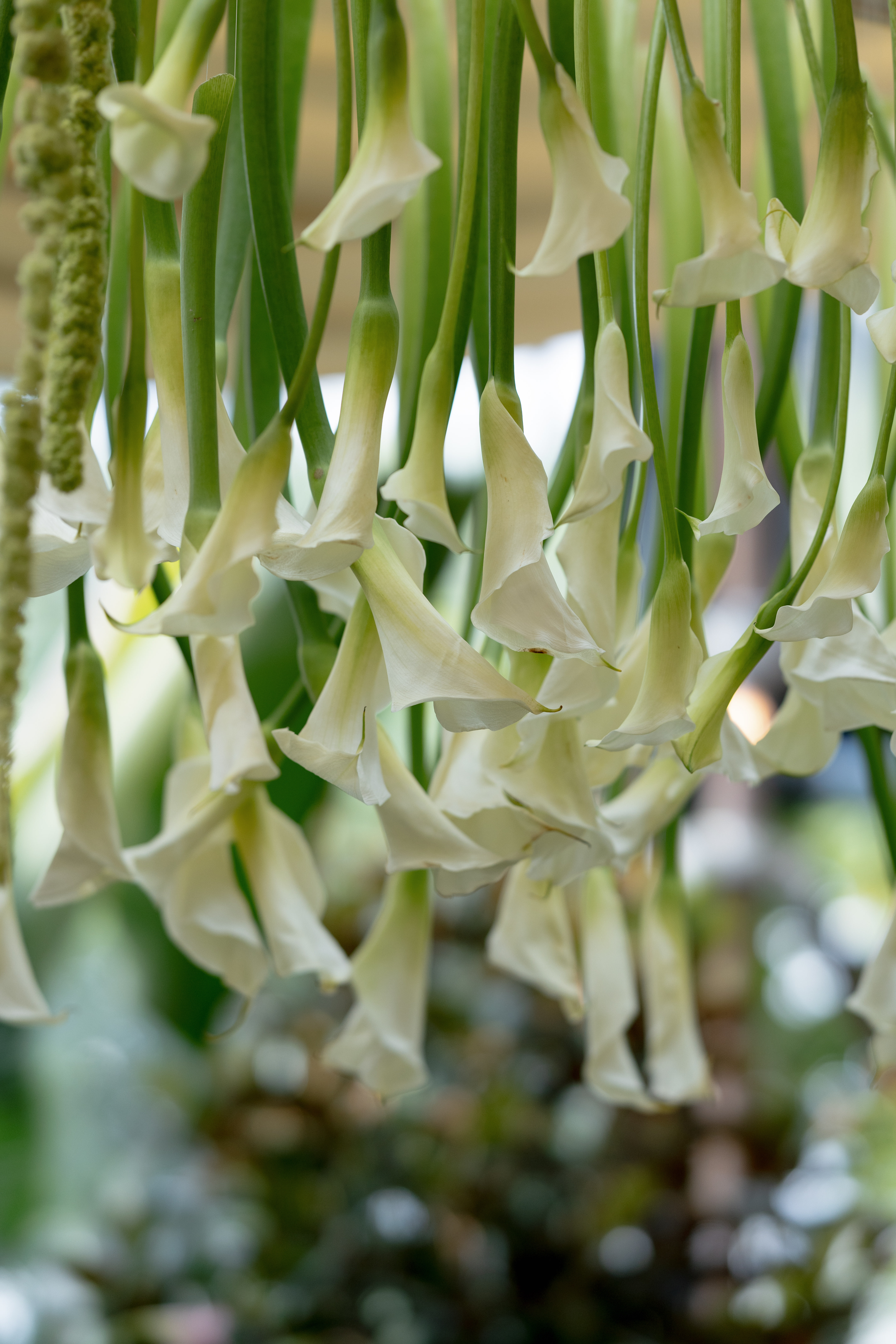 Over the past year we've seen a rise in a new kind of white & green color palette. Chartreuse green has taken center stage and with it comes the opportunity to feature more funky shapes and textures. Drippy green amaranth, stunning lime anthurium, creamy white calla lilies, fluffy green hydrangea, and unique grasses & seed pods all get their time to shine with this color combo.