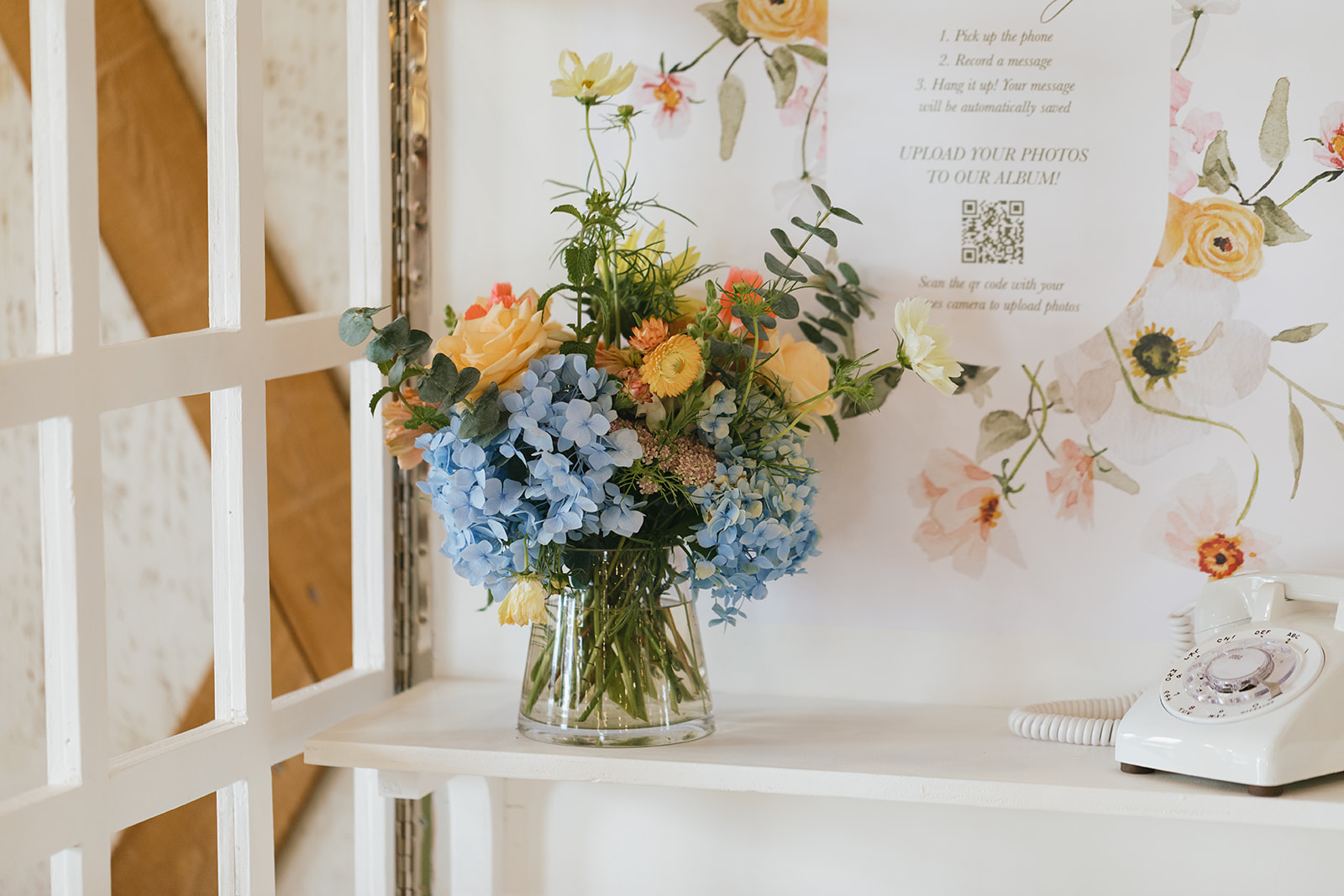 Jennifer & Daniel's wedding was the epitome of garden party. Colorful, romantic blooms, vining greenery, and sweet details like baskets, faceted glass, and a vintage-style phone booth helped create the garden-y vibe.