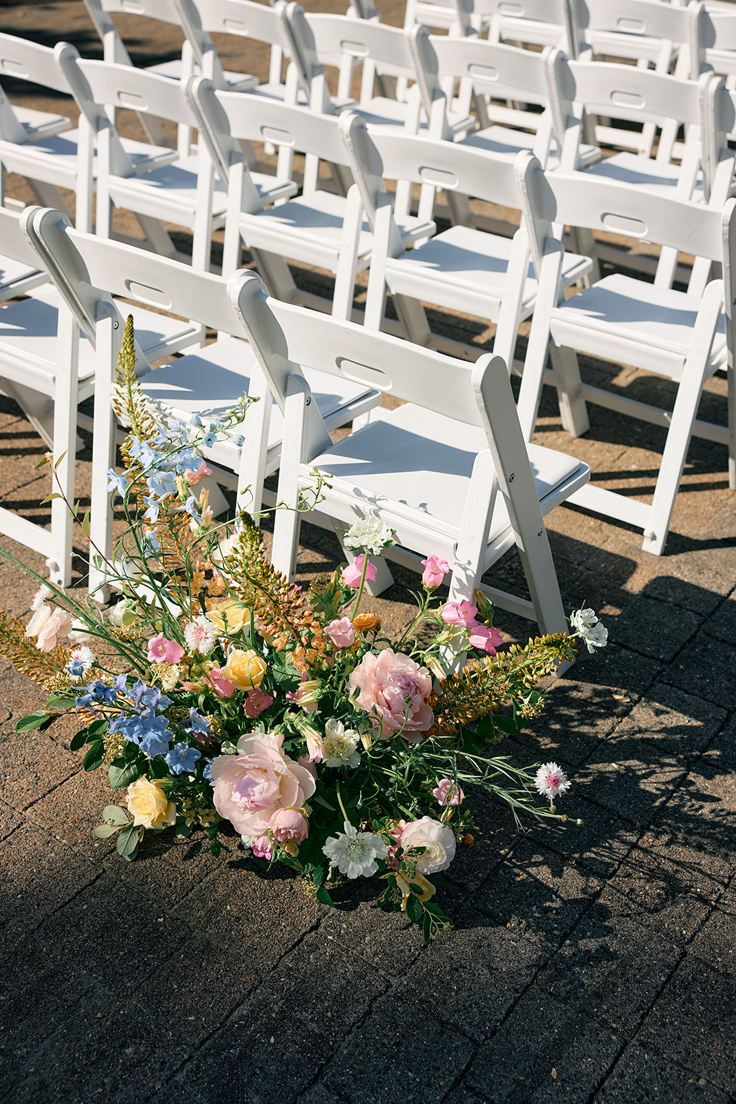 If you want romance with a touch of wildflower, look to Marissa & Zach's wedding for inspo! The delicate, airy wildflower blooms like delphinium, campanula, and bachelor buttons added levity & lightness to the big, romantic peonies, ranunculus, and dahlia in the pastel designs. The result was soft, fresh, and perfect for a late spring wedding!