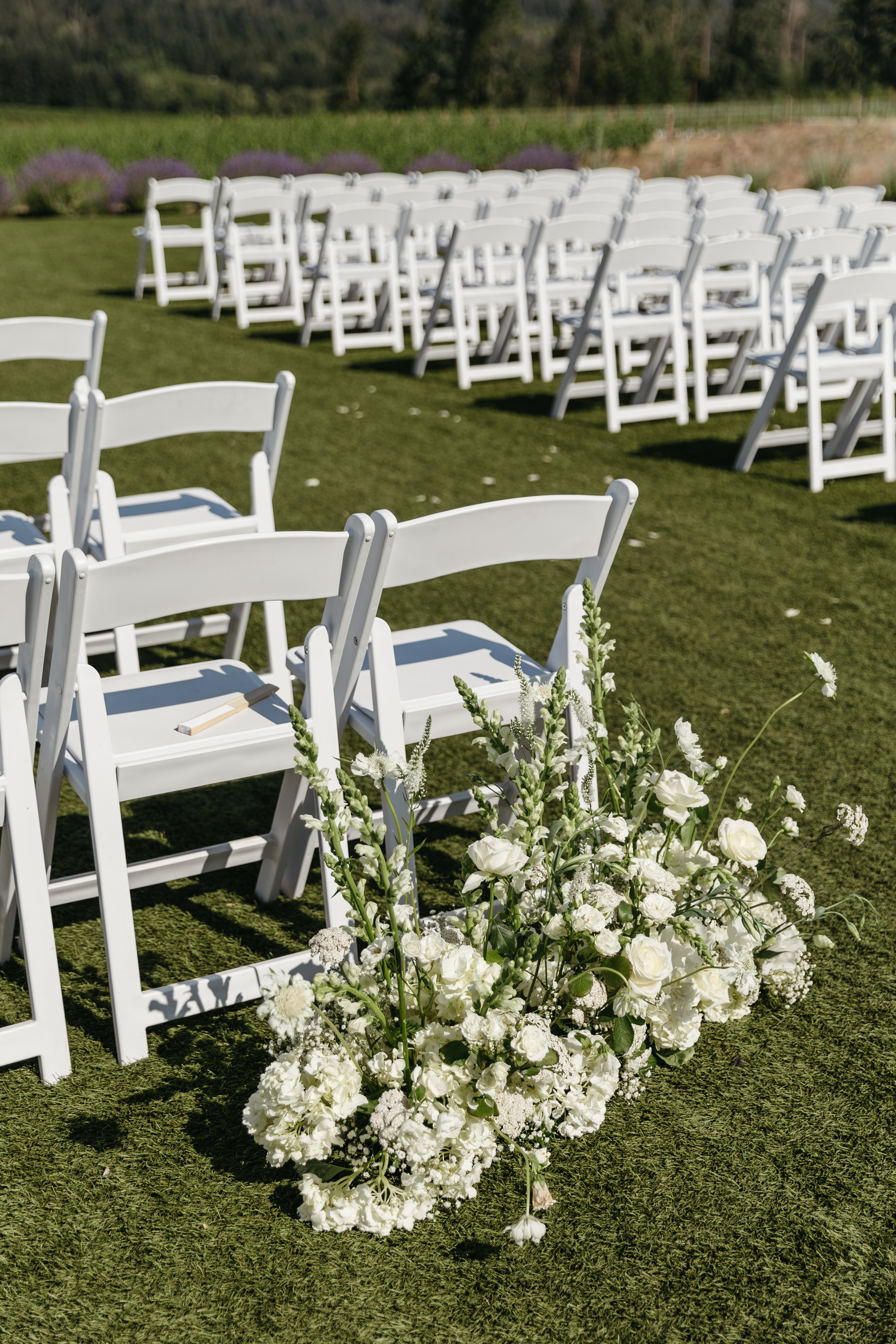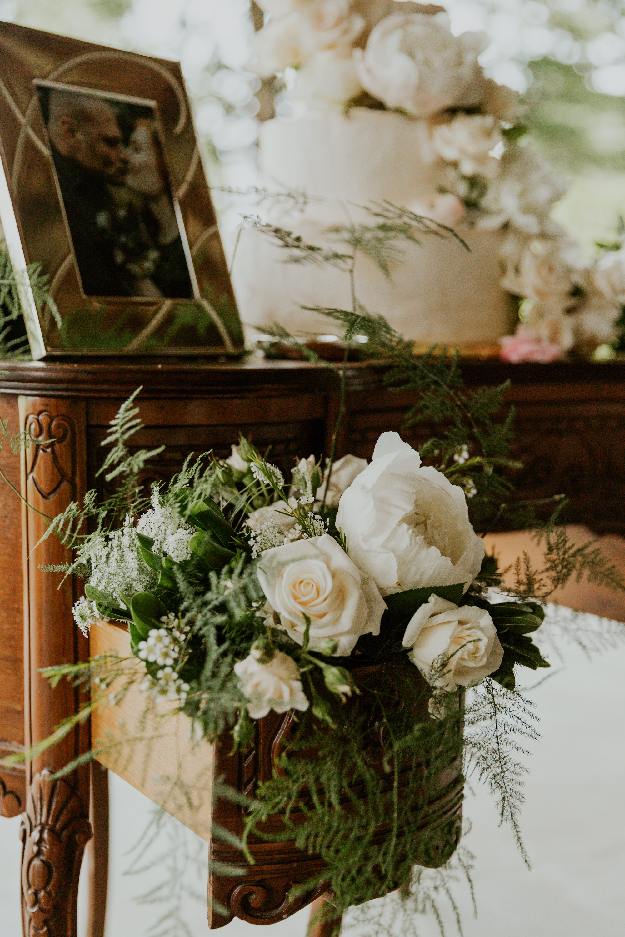 For Iola & Cameron's wedding, we used primarily white flowers with a bit of baby's breath to create light and airy arrangements that felt both modern and romantic.