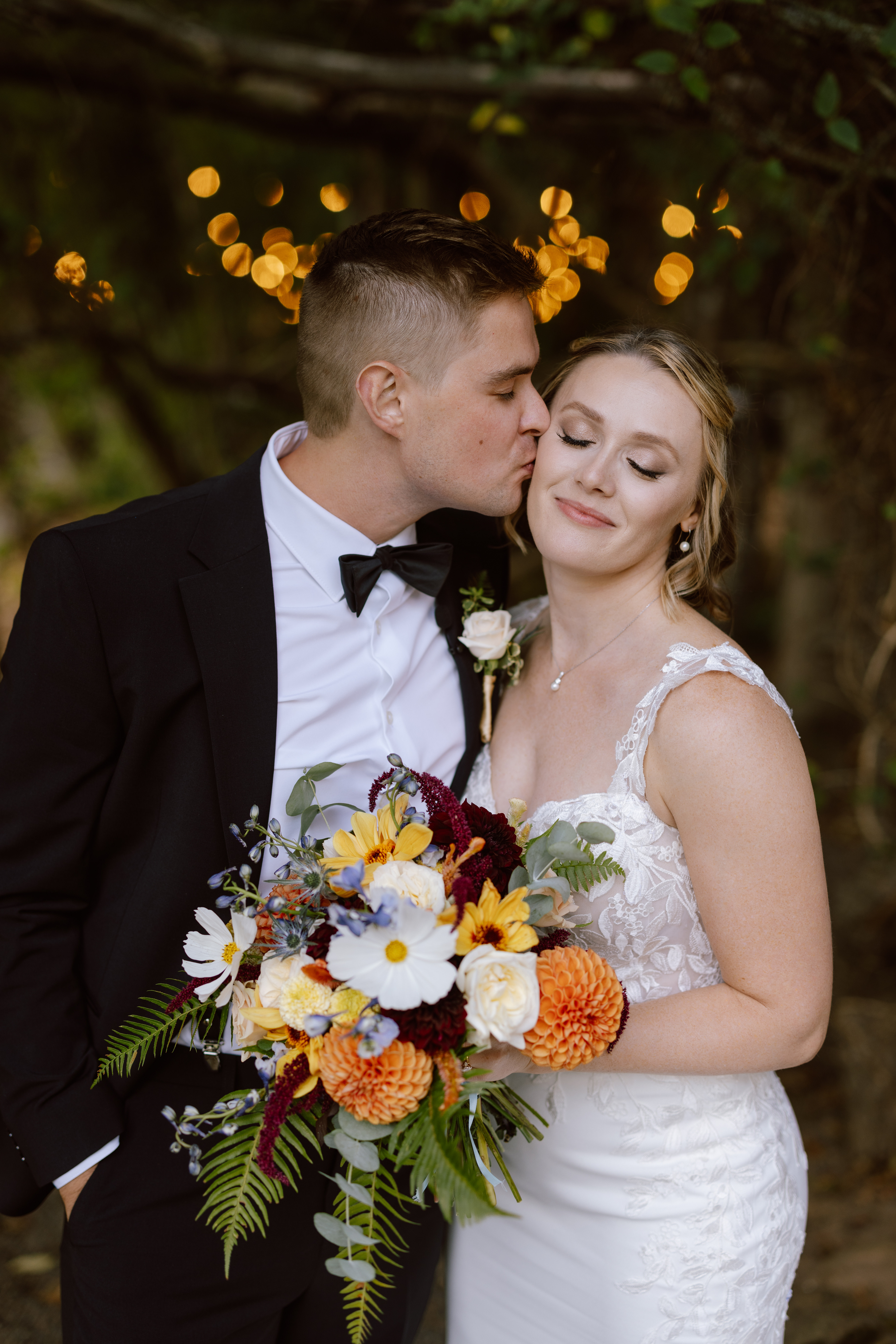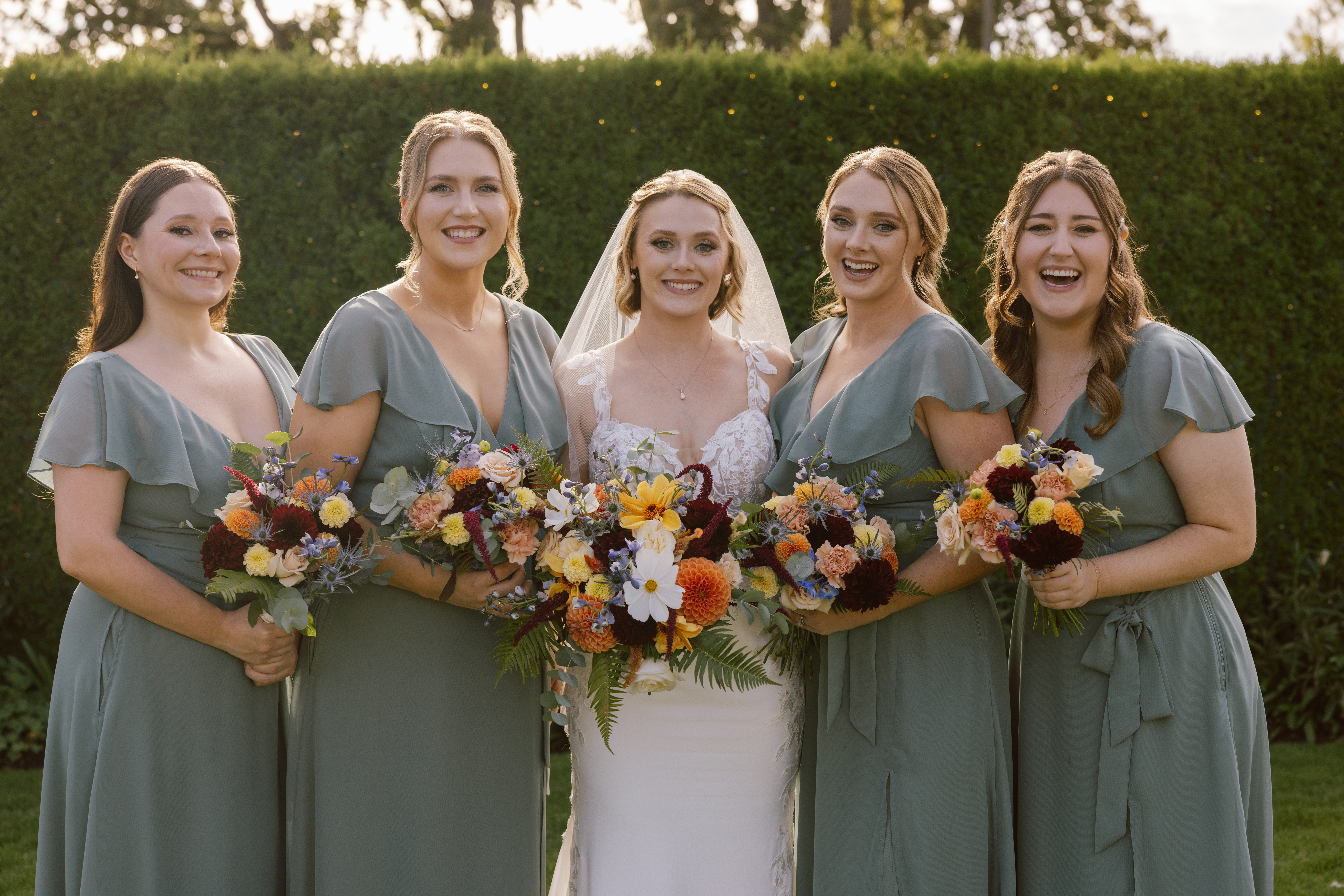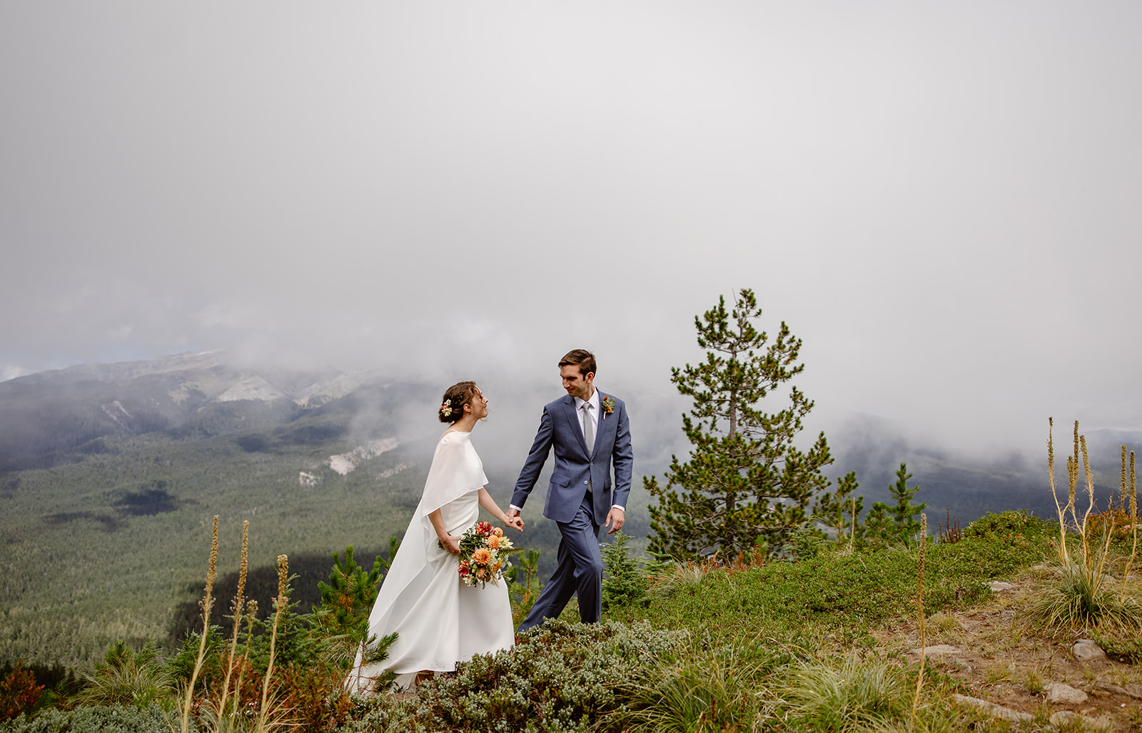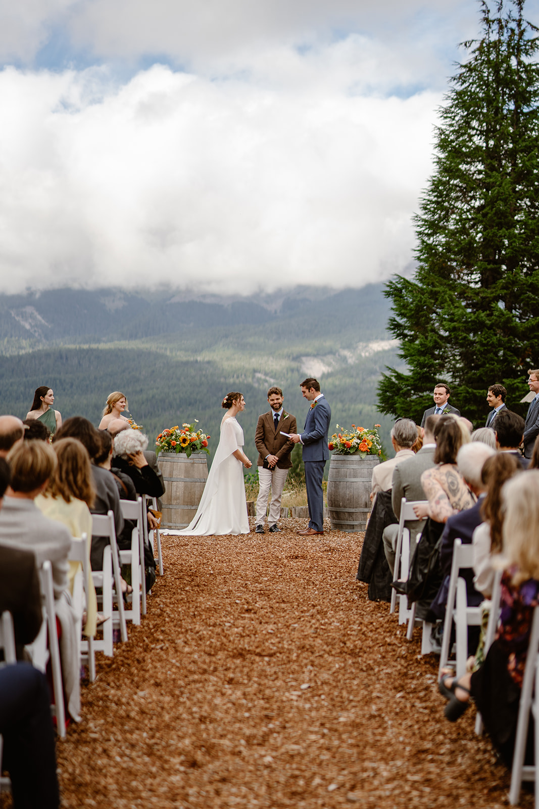 Sarah & Chris wed in the clouds on Mt. Hood and turned to the PNW nature for inspiration. We incorporated ferns, sunflowers, dahlias, matricaria, and zinnia throughout the designs for summery-woodland vibe!
