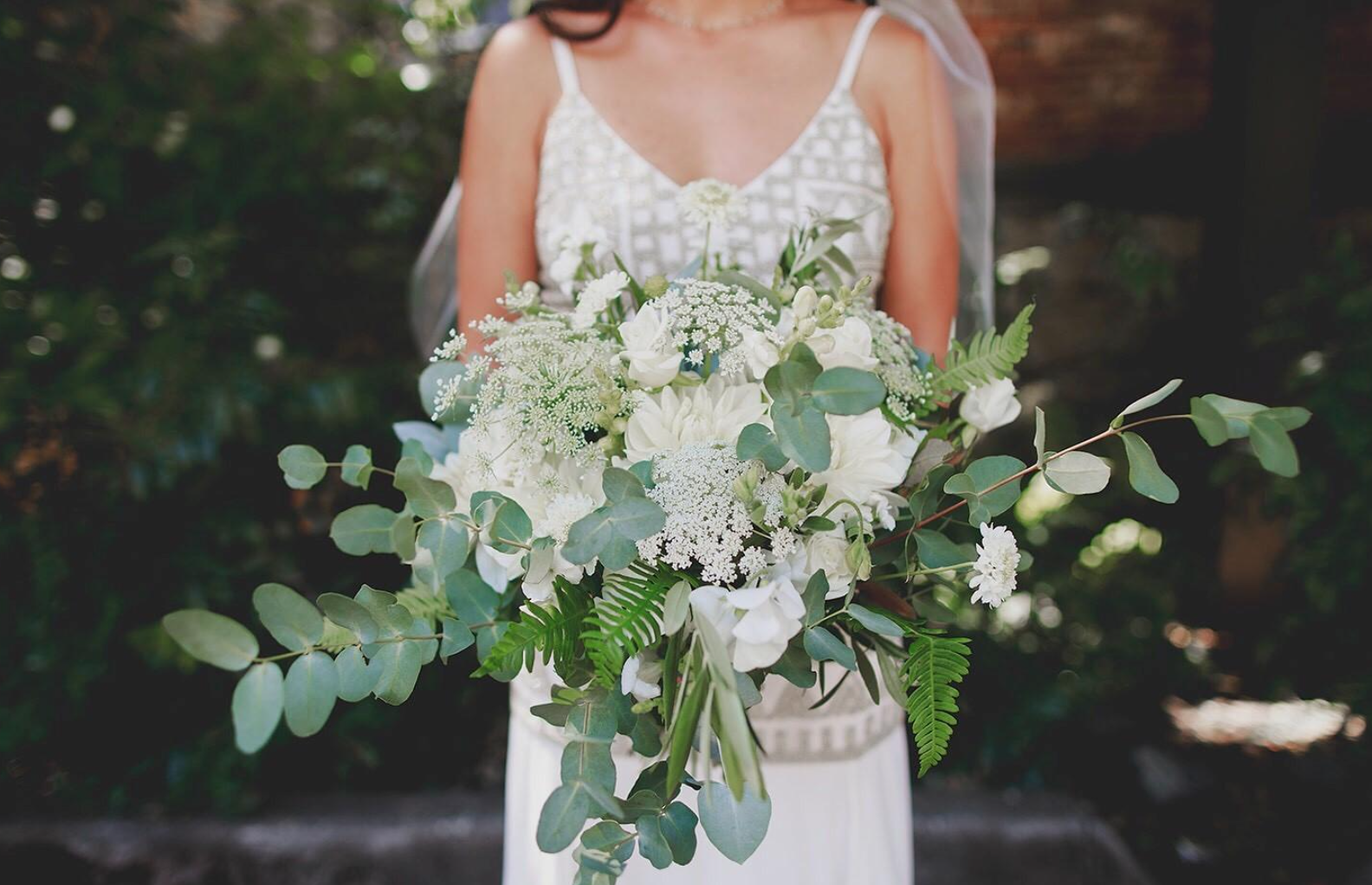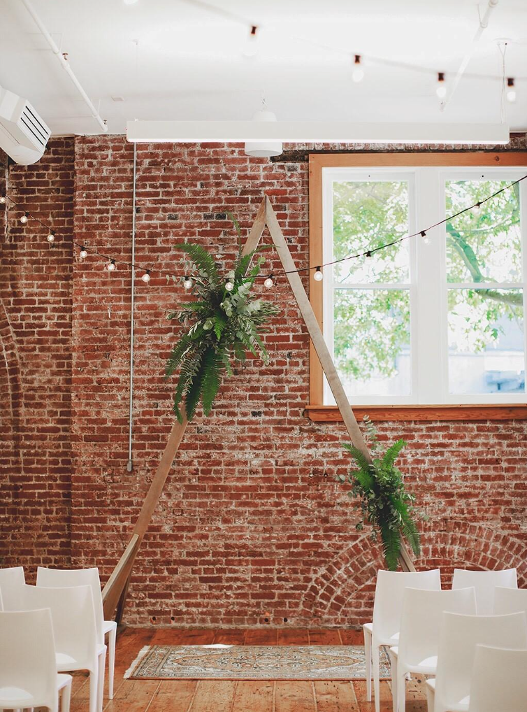 Teresa and Tyson's style was a foliage forward celebration to bring the outside in at Irving Street Studios. We designed with fern, eucalyptus, and olive alongside dahlias, sweet peas, Queen Anne's lace, and snapdragon for a forested-feel.