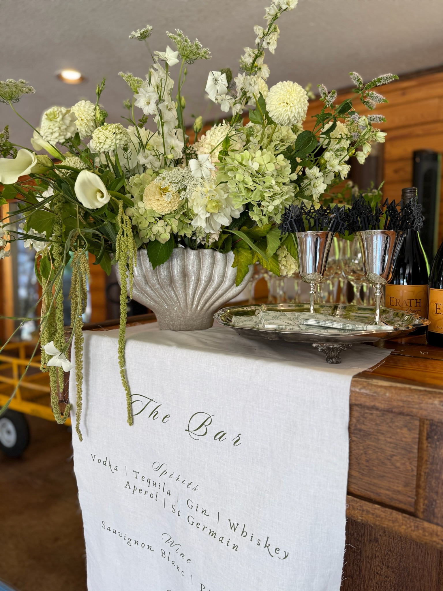 When dreaming up wedding flowers, it's easy to remember the main items - bouquet, centerpieces, ceremony florals. But often there are places or details that are overlooked or not thought of until the last minute such as the welcome area, bar, dessert table, signage, etc.