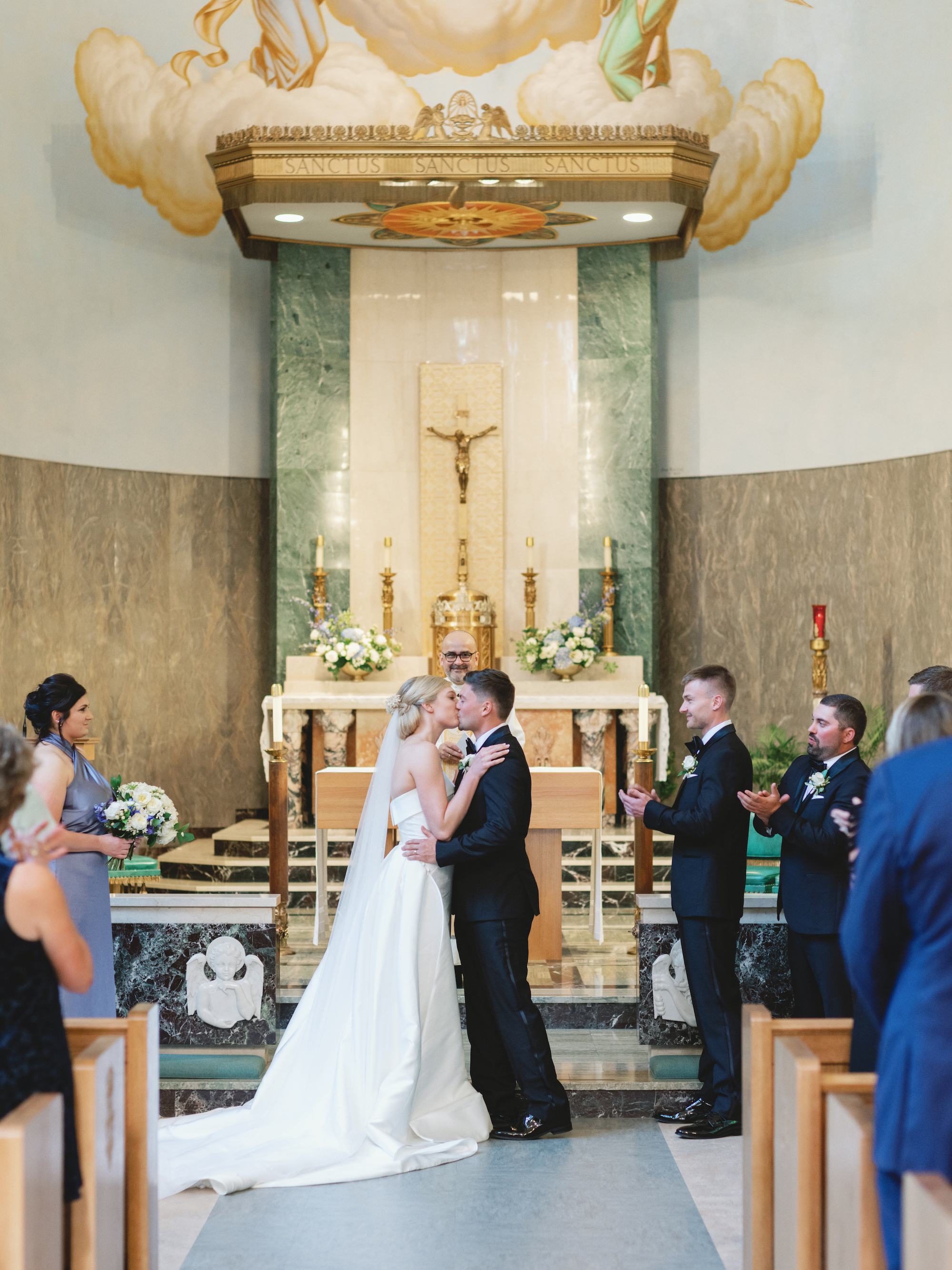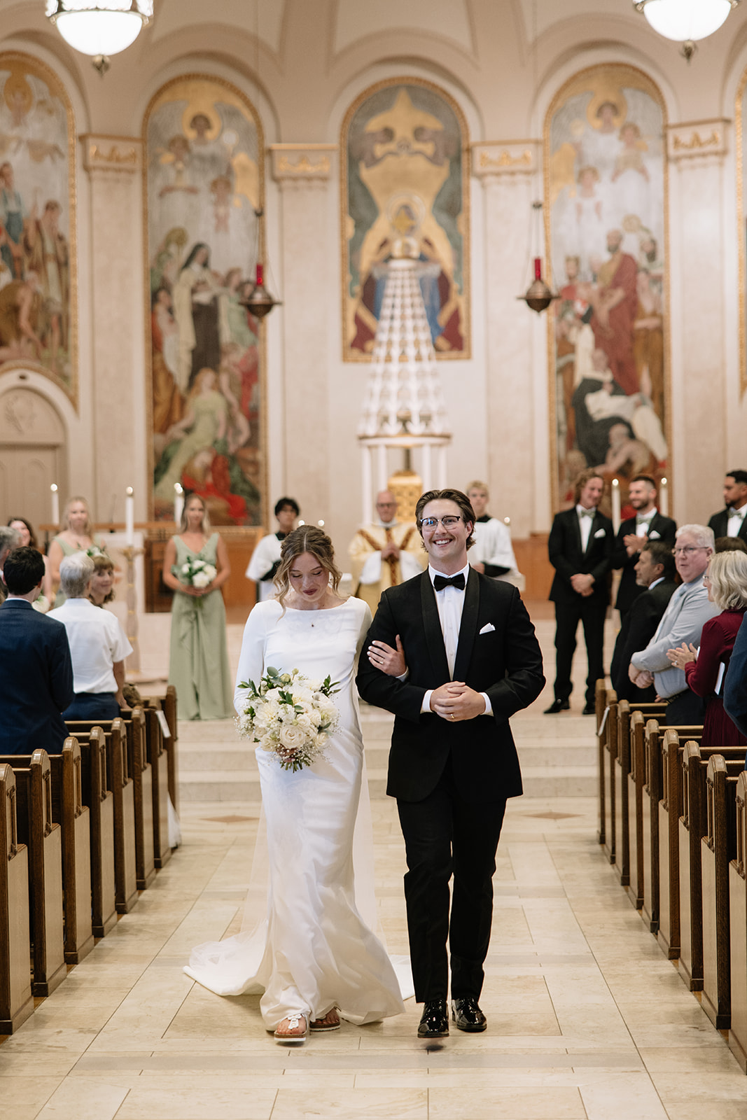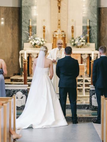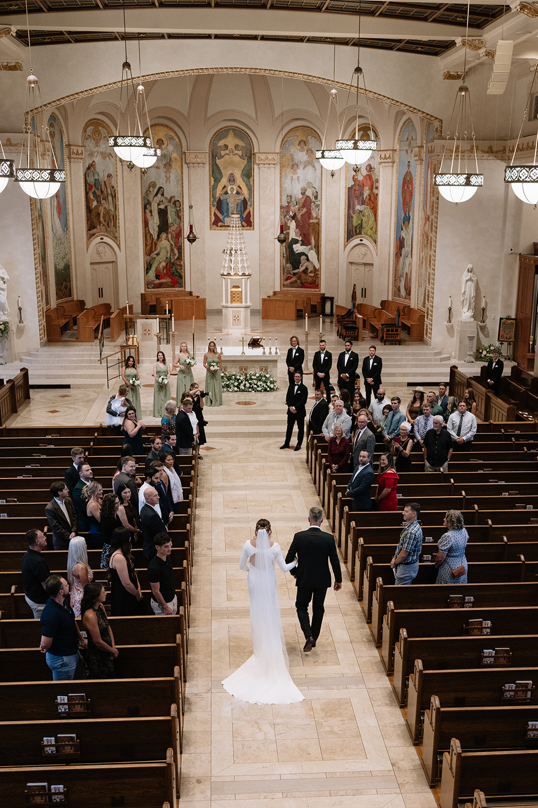 Ali & Mike kept floral minimal for their vows at St. Mary's Cathedral. We place two large meadow arrangements in front of the altar. The flower girls carried single varietal bouquets that were also an offering for Mary.
