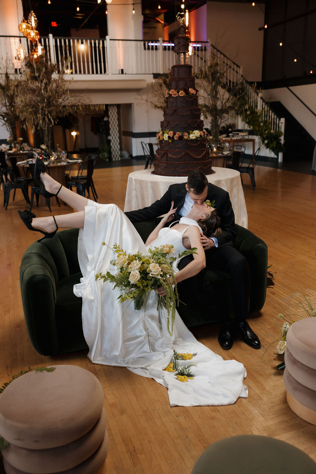 Vendor Team: Venue: The Evergreen · Planner: Your Perfect Bridesmaid · Photographer: Dionne Kraus Photography · Videographer: Love Bug Pictures · Florals: Songbird Floristry · Lighting: Greenlight Creative · HMU: Top Knot Beauty Bar · Rentals: Lily and Cane · DJ: Paradox Productions · Caterer: Devils Food Catering · Bridal Shop: Annas Bridal · Dessert: Banquette Bakery · Signage: Crave Design · Tarot Card Reader: Crystal Seed Tarot · Aerialist: Aerial Music Collective