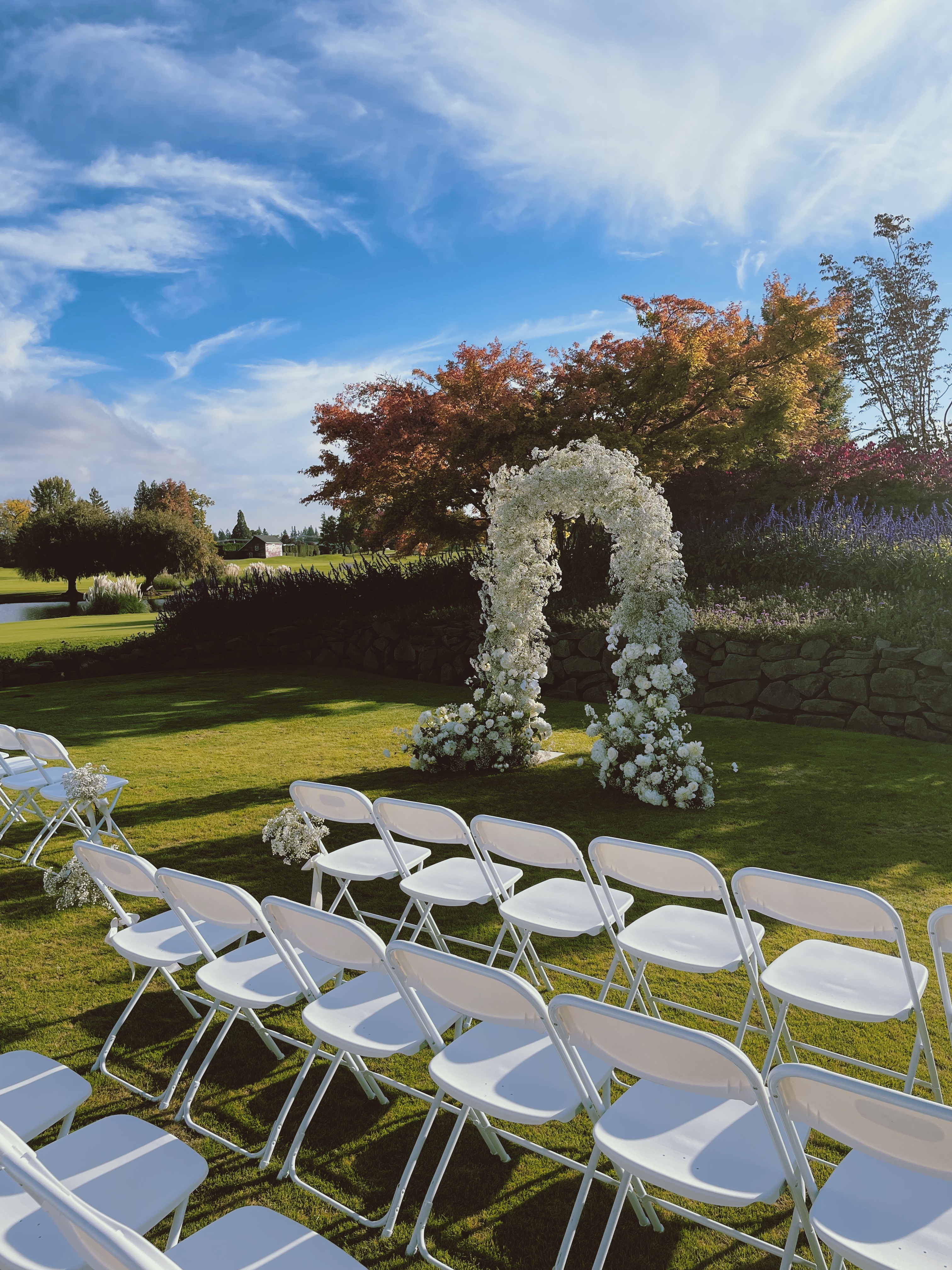 Couples may opt for the secluded Orchard ceremony site, surrounded by big trees and beautiful hanging flowers. Or they may choose to say "I do" on the Red Shed Lawn, situated next to the 18th green with sprawling views of the course.