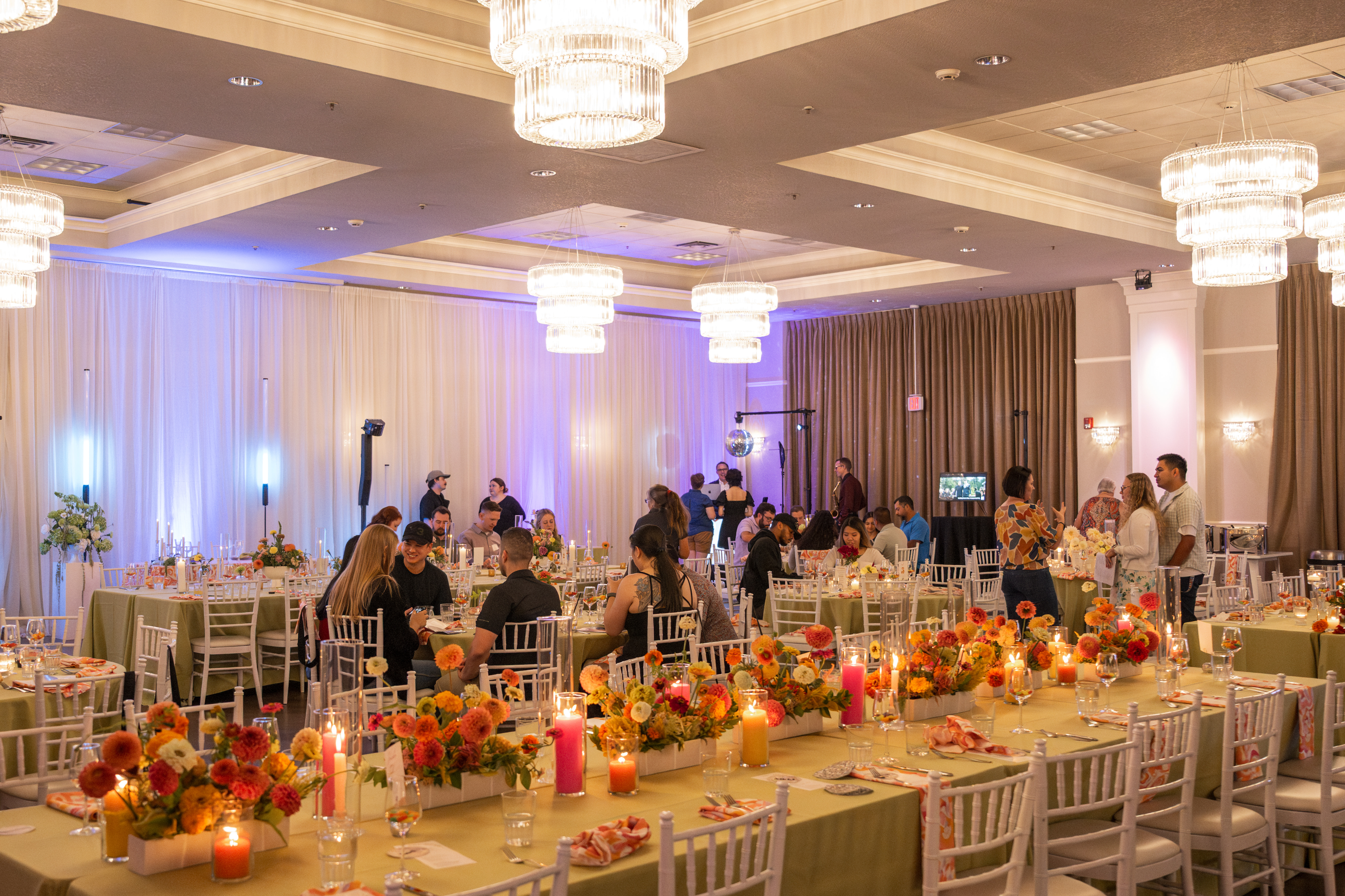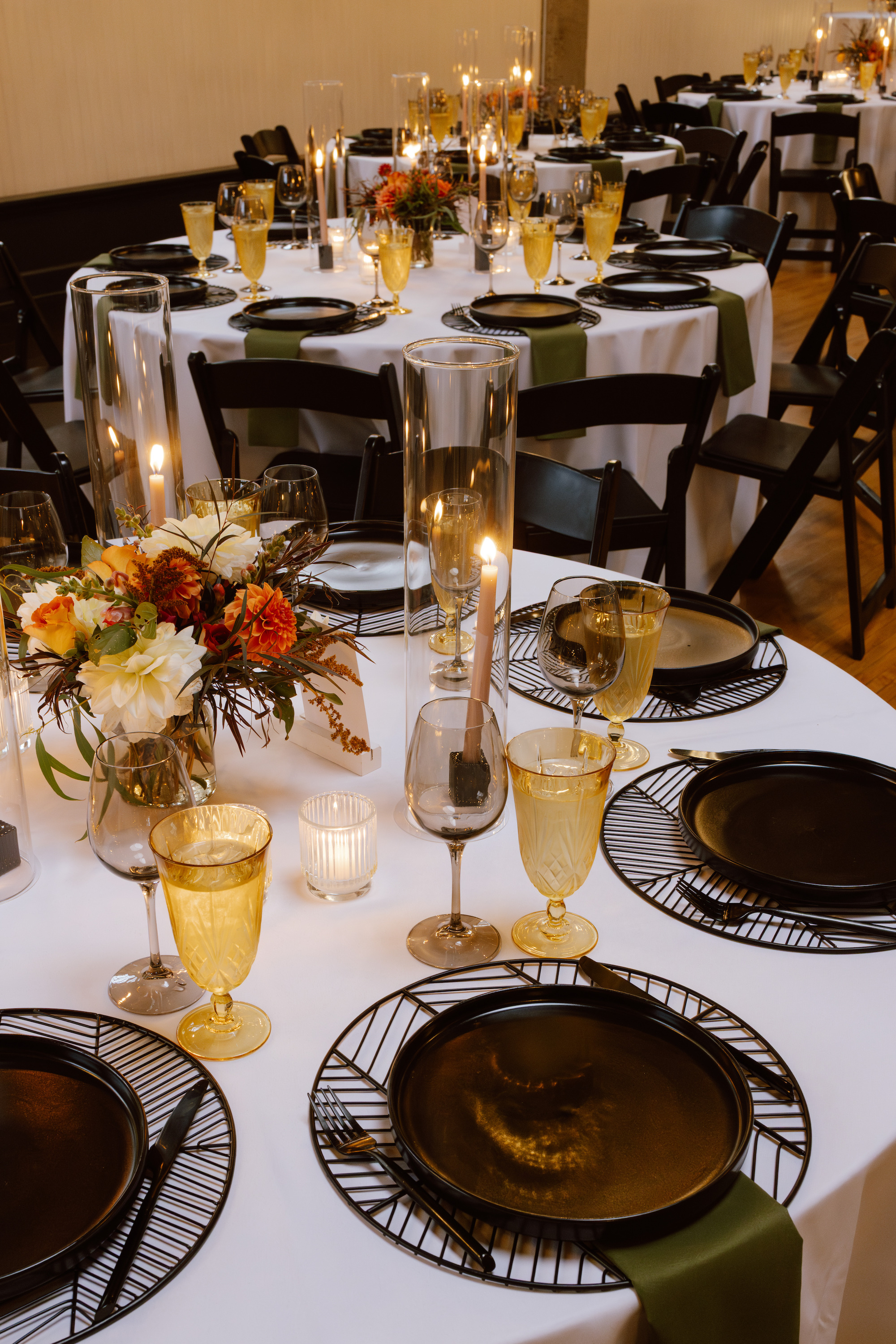 In a room full of tables, alternating your table center designs can be a great way to break up the room and add dimension.