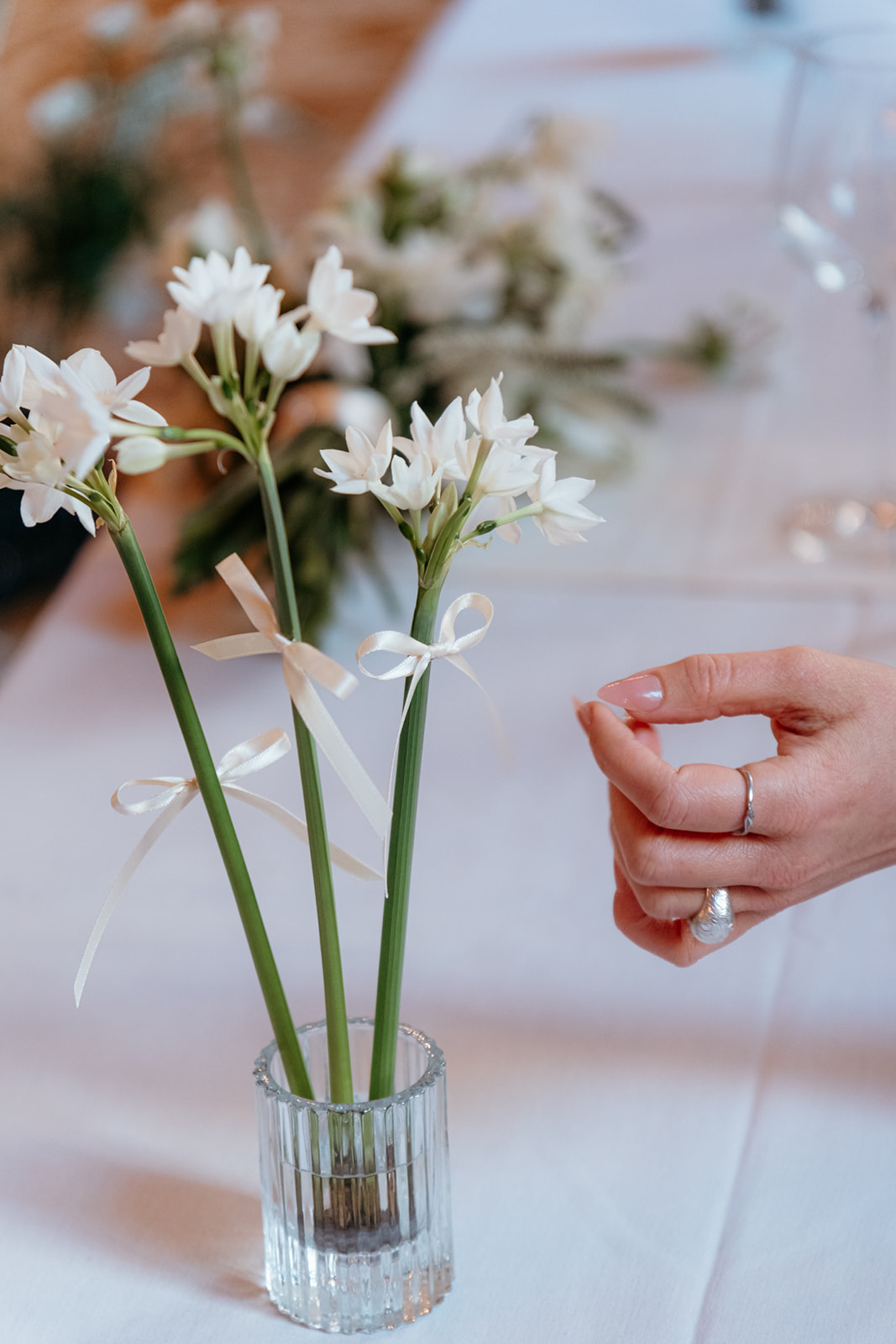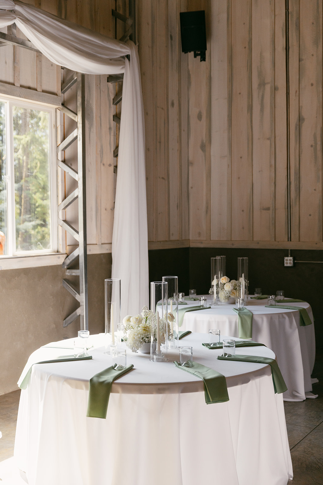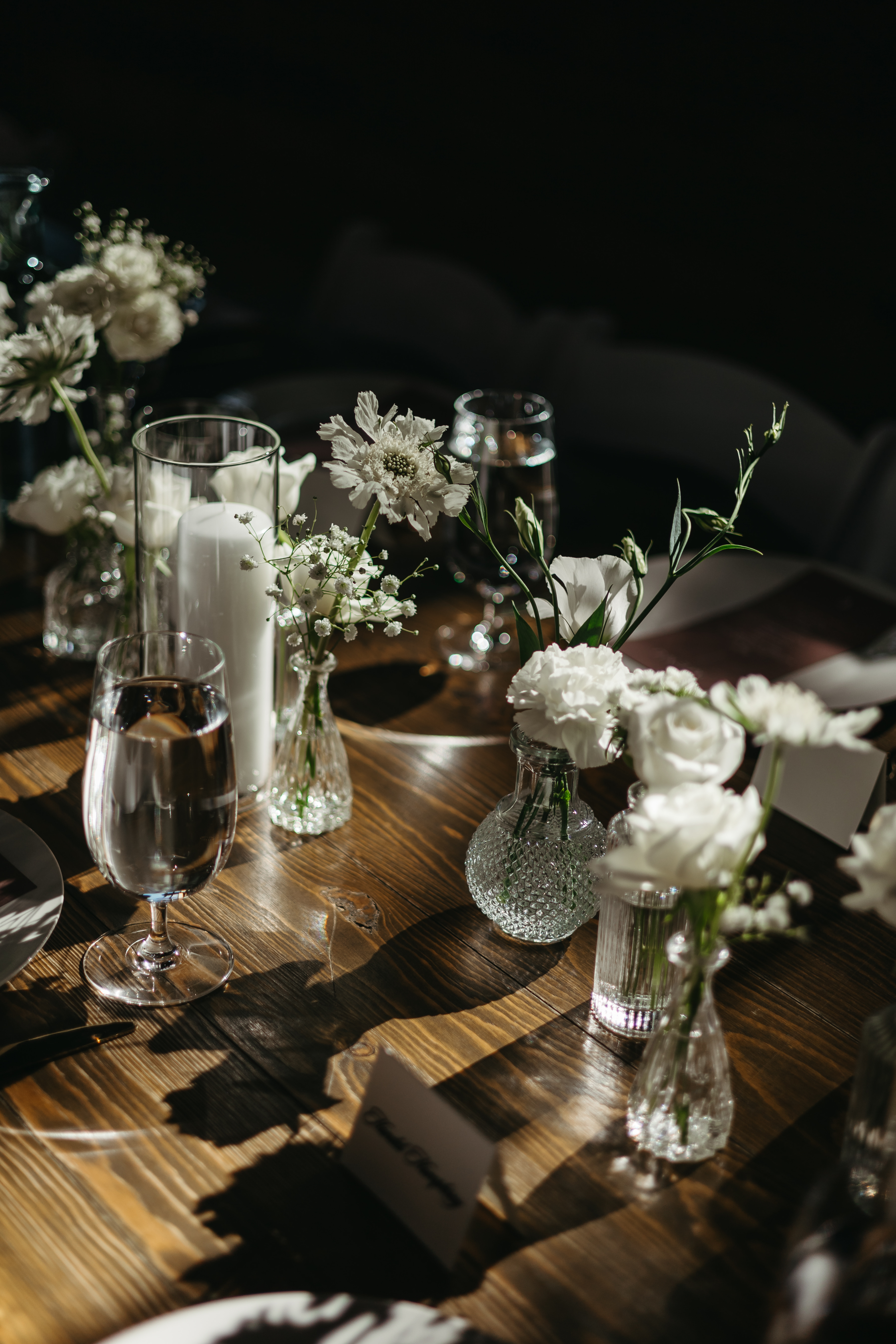 Fill your table with bud vases or pin cups for a light & airy feel. We suggest adding a minimum of 6-8 bud vases or 4 pin cups per 8' of table to ensure that the table doesn't feel sparse.
