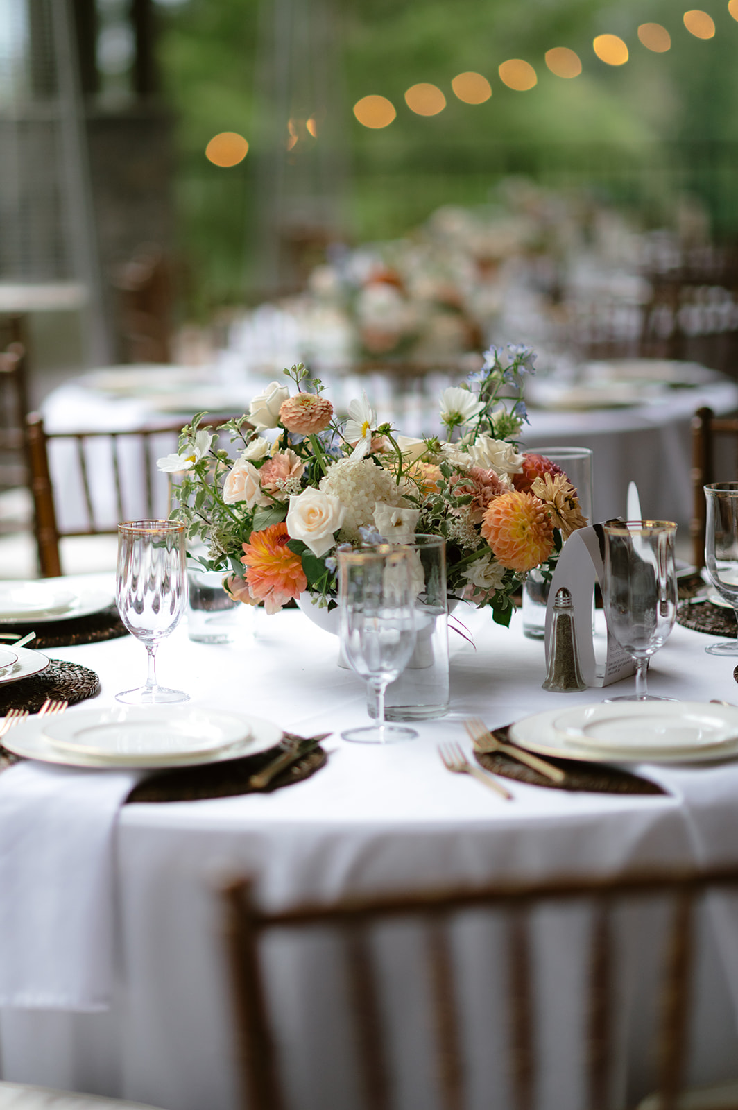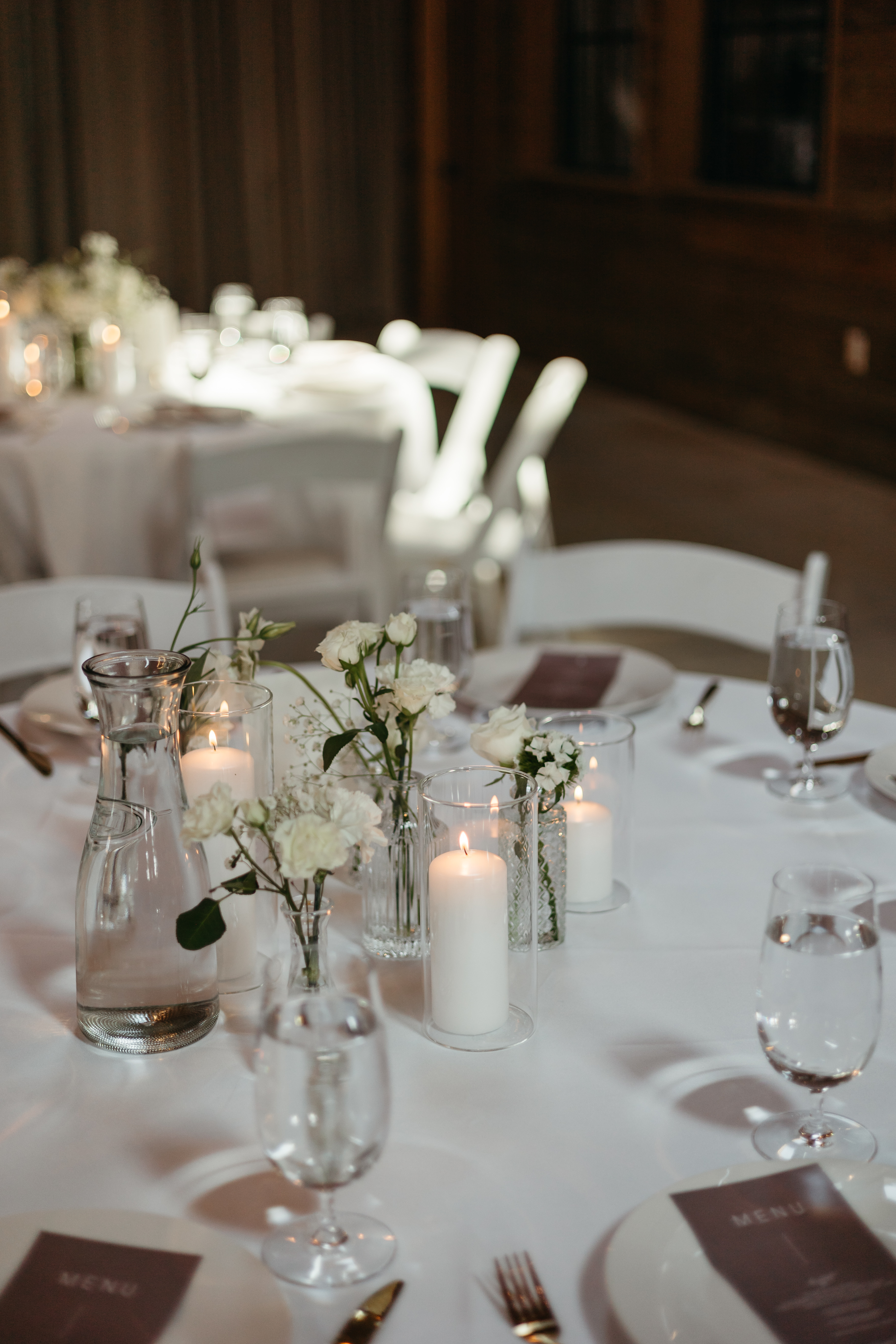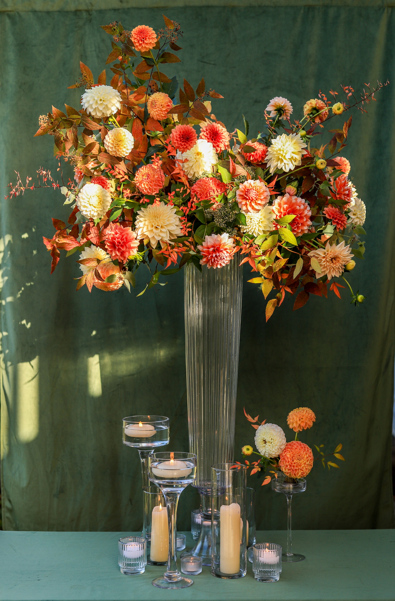 Below are examples of the most common centerpiece options we offer as well as our recommendations for how best to display them. When deciding on which style will work best at your wedding, be sure to consider table shape & size, style of food service (buffet, plated, family style), and any other decor you're planning to sit tabletop.