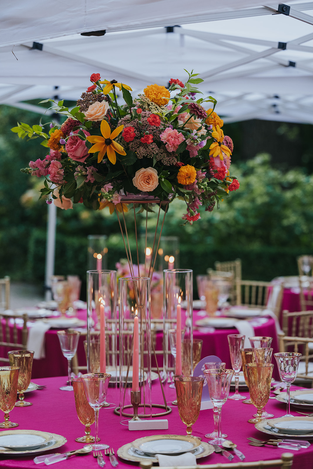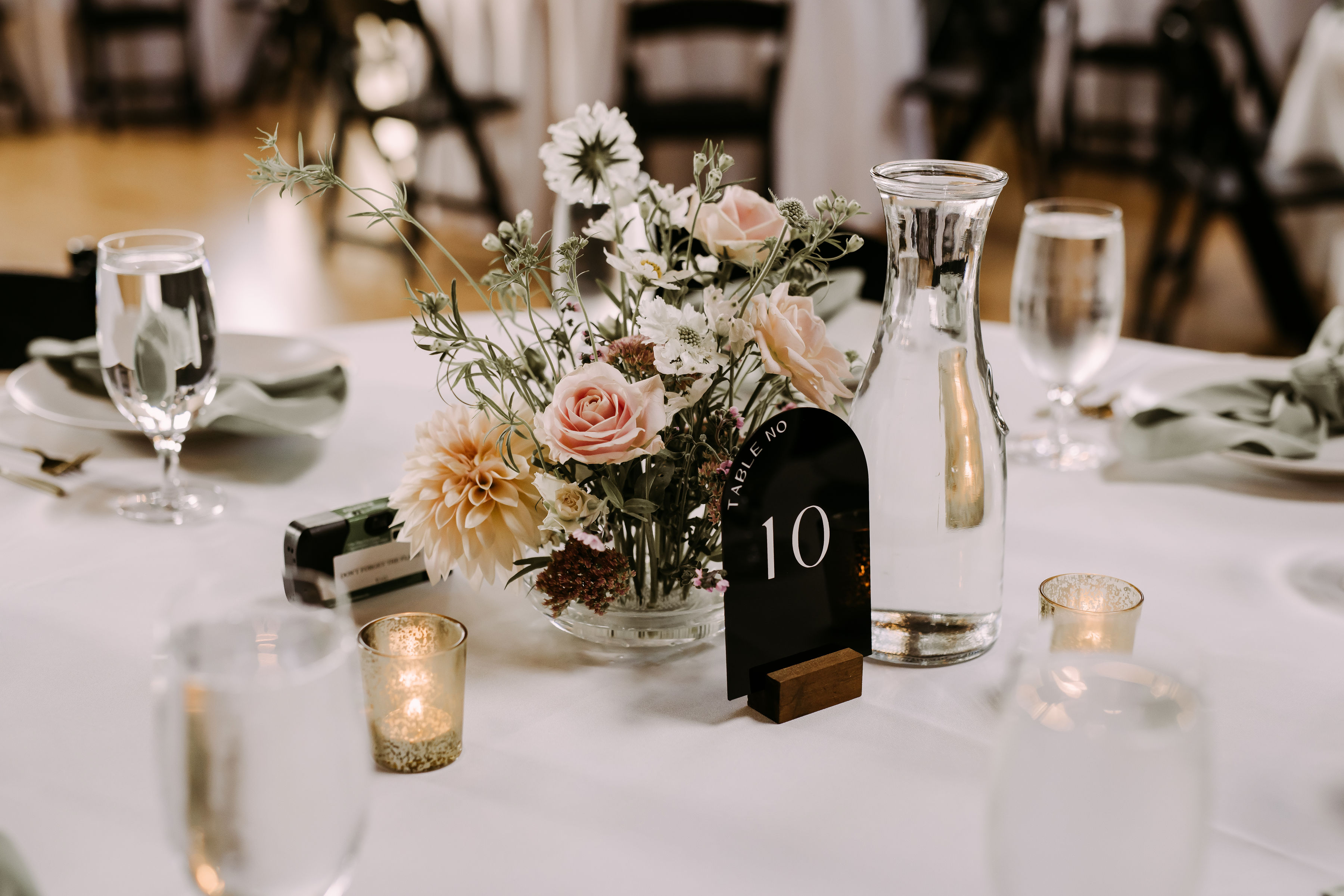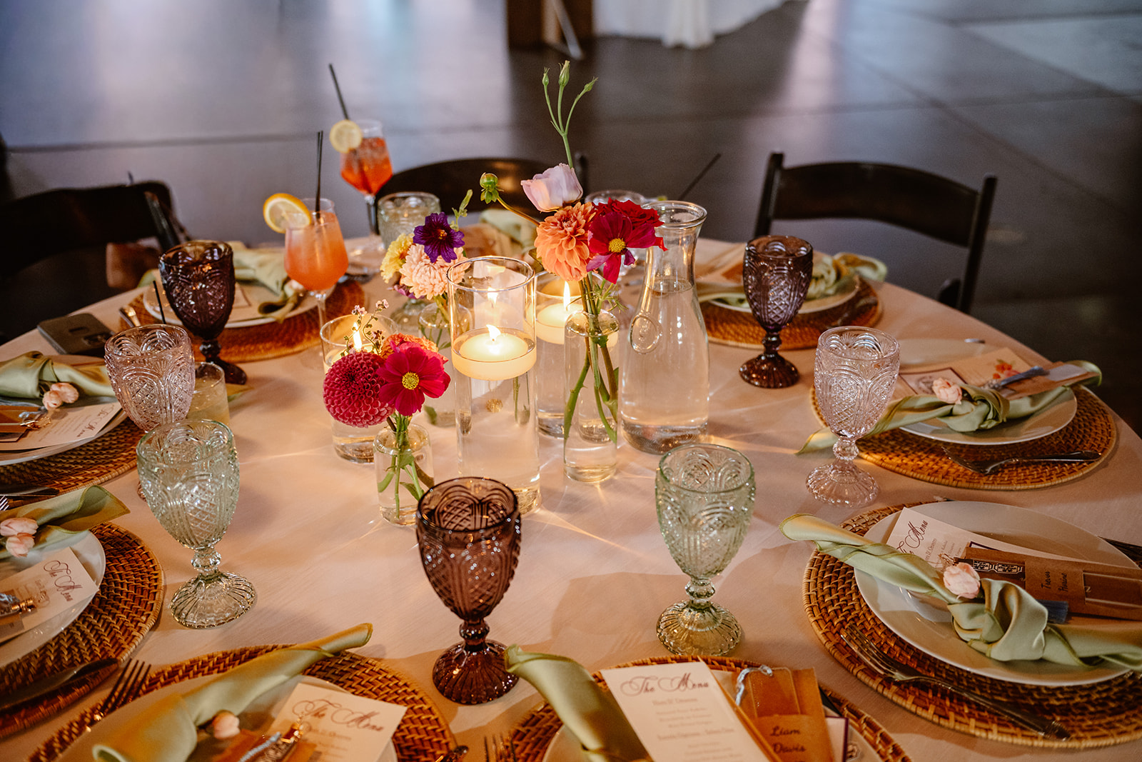 Below are examples of the most common centerpiece options we offer as well as our recommendations for how best to display them. When deciding on which style will work best at your wedding, be sure to consider table shape & size, style of food service (buffet, plated, family style), and any other decor you're planning to sit tabletop.