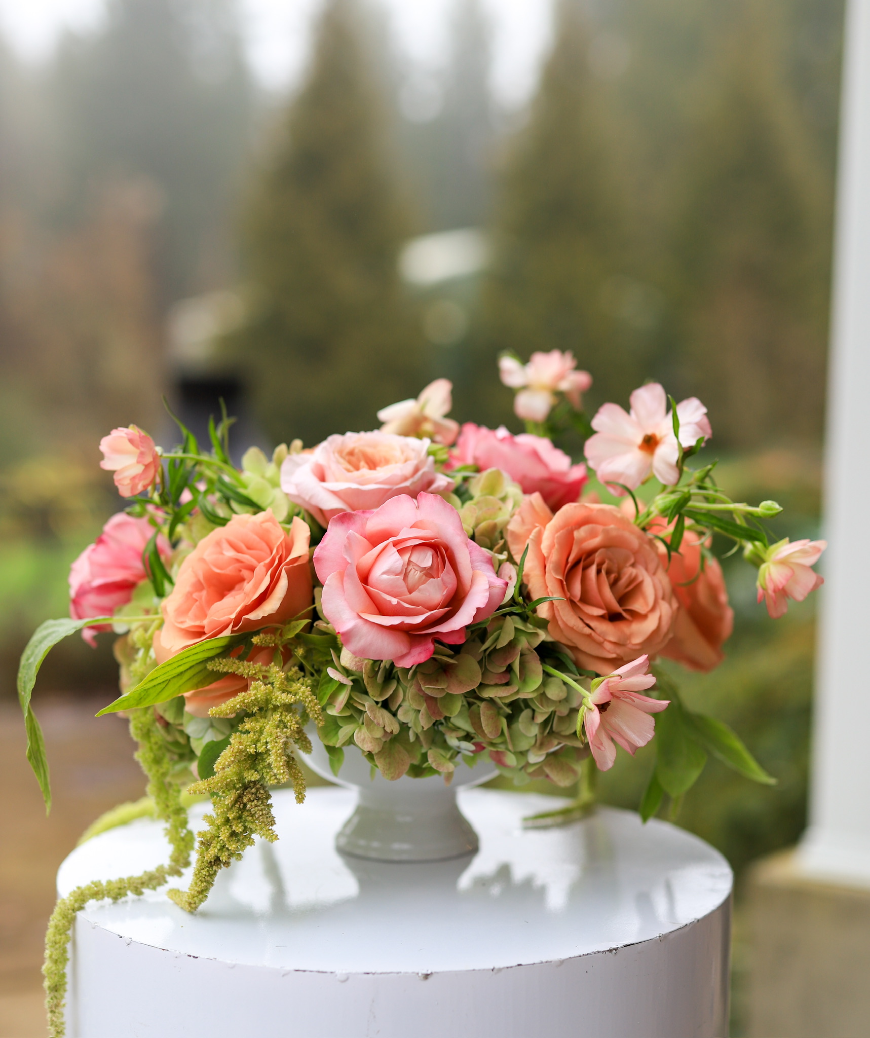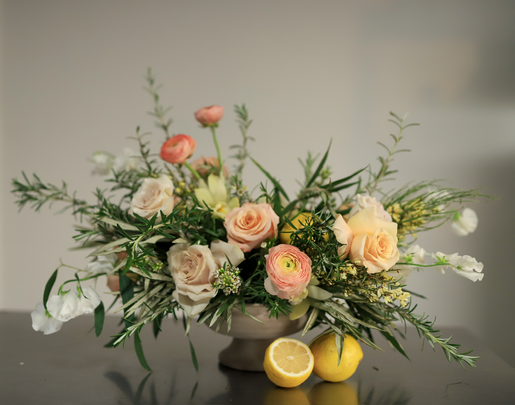 We offer a bespoke multi-piece design in our planning tool that can be a mix of shapes and styles to fill your table. We can combine compotes with pin cups, alternate medium and petite arrangements, and many other creative configurations to wow your guests.