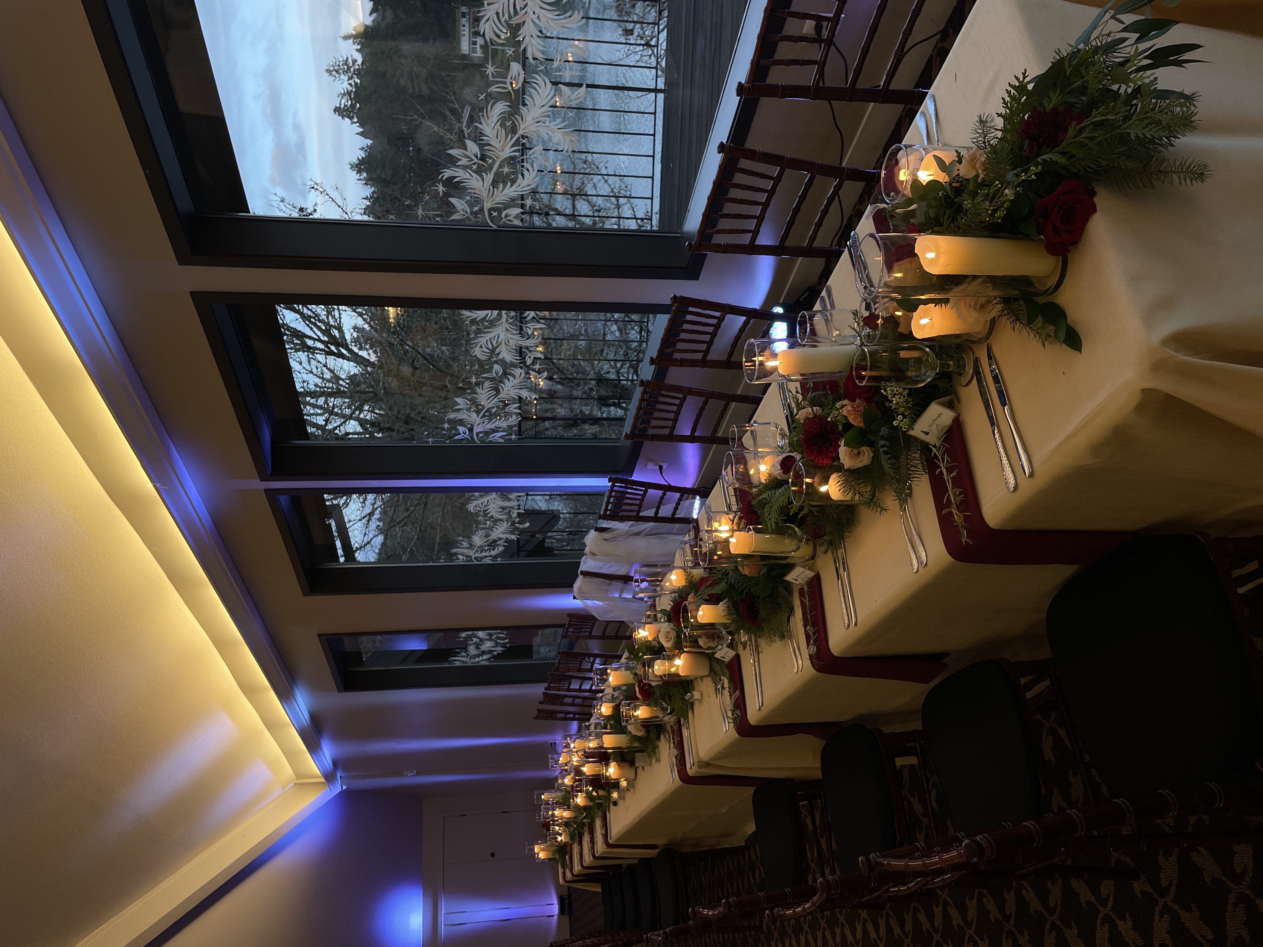 Long tables provide an opportunity to add a variety of centerpieces. They look great with a mix of styles and candles. Keep in mind that long tables usually require more florals, making them more expensive than rounds.