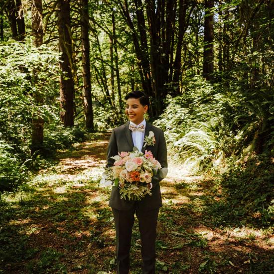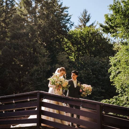 Sandra & Sierra wed at Horning's Hideout on the main stage. For their florals, we used a mix of romantic blooms and boho elements to create a lush, organic design. Included in the arrangements were roses, cosmos, zinnia, hydrangea, wax flower, eucalyptus, variegated pittosporum, eucalyptus, and amaranth. We also used a few mini calla lilies per request for Sandra's bouquet & boutonierre.